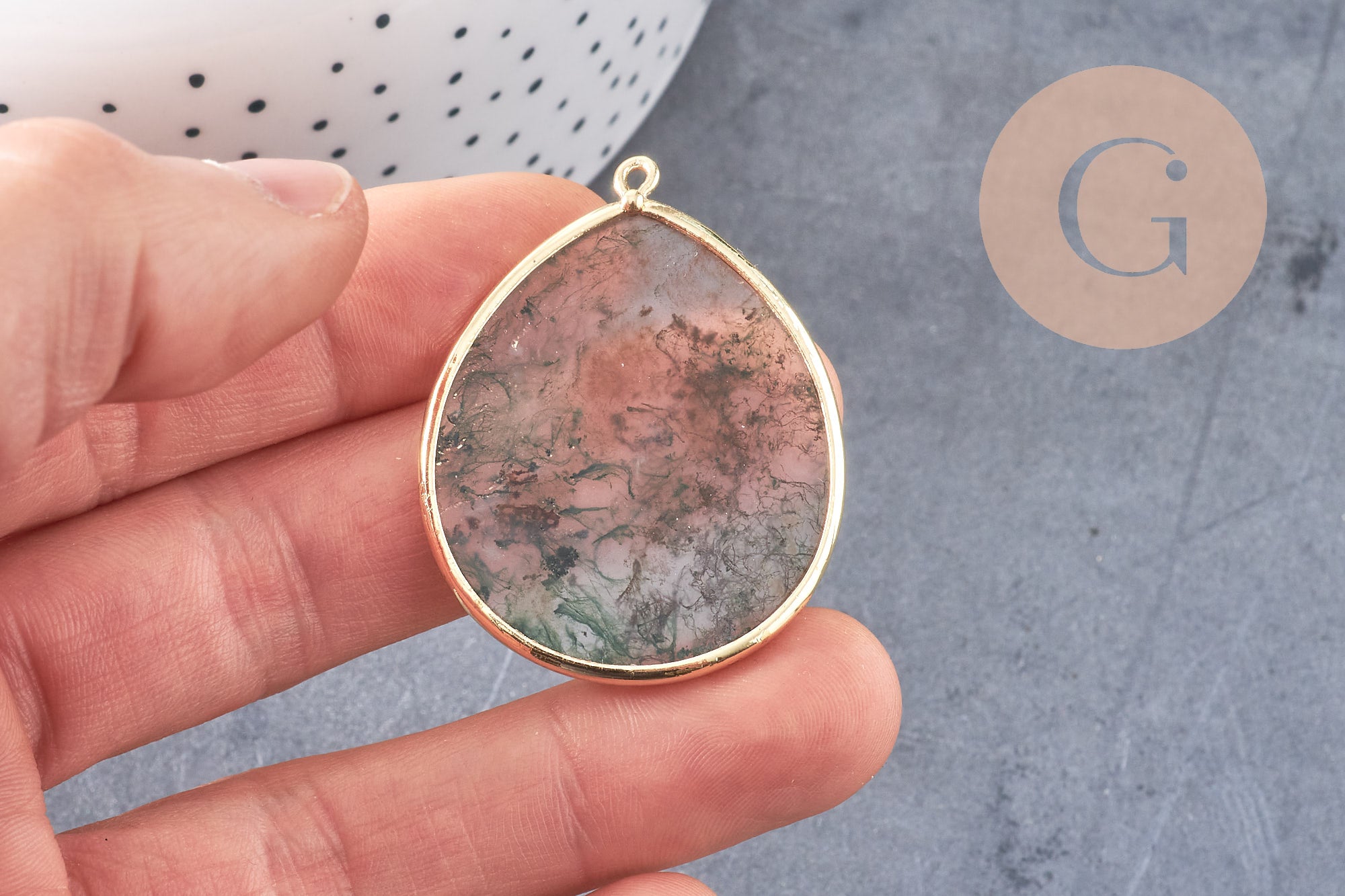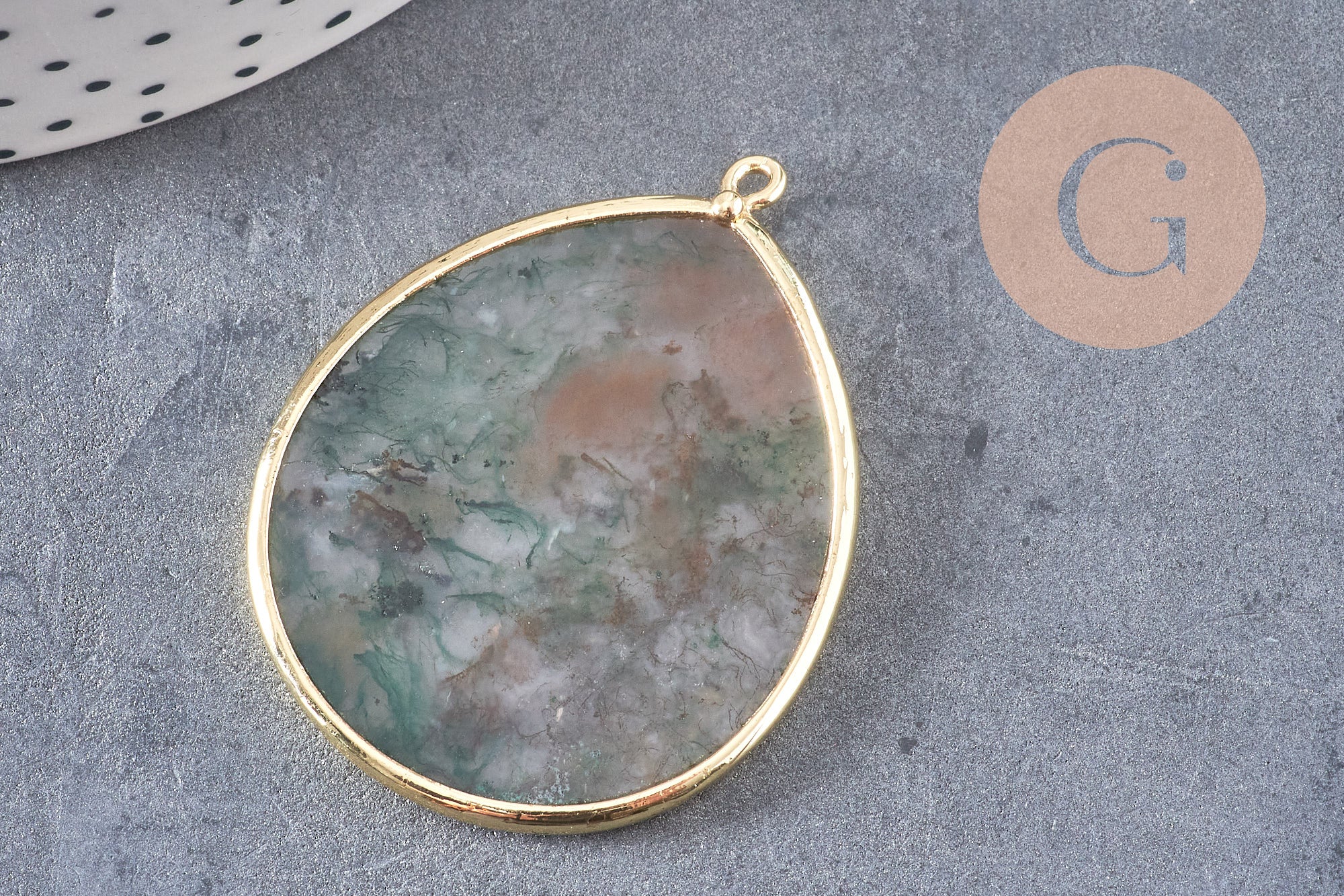 Colgante gota de ágata verde musgo, colgante de joyería, colgante de ágata, colgante de piedra, ágata natural, ágata de musgo, 41mm, x1 G3291