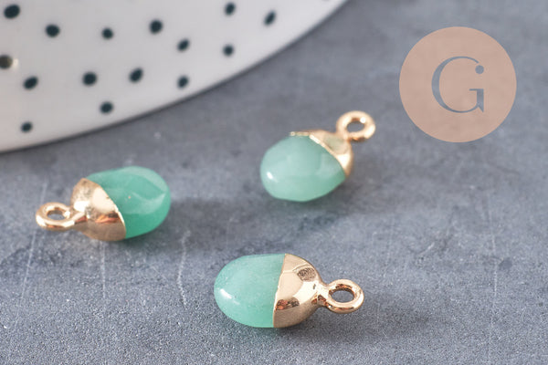 Pendentif goutte aventurine naturelle fer doré 14mm, x2 (G0152)
