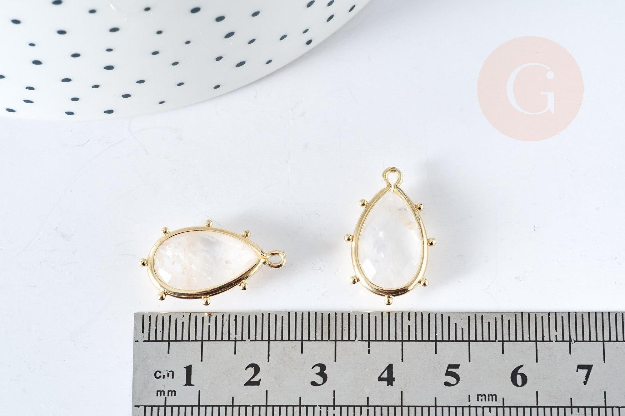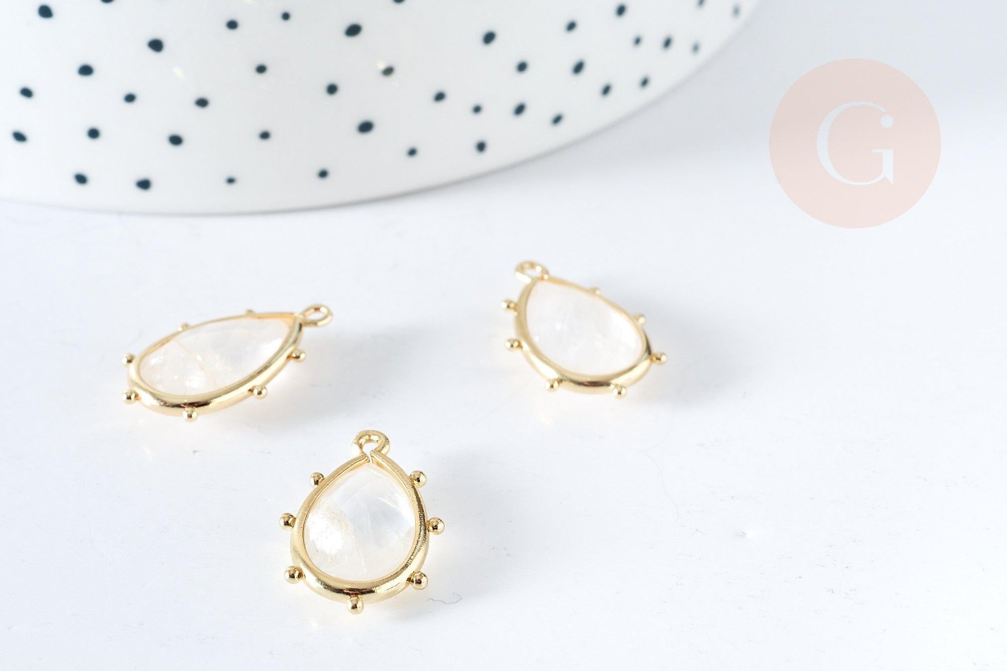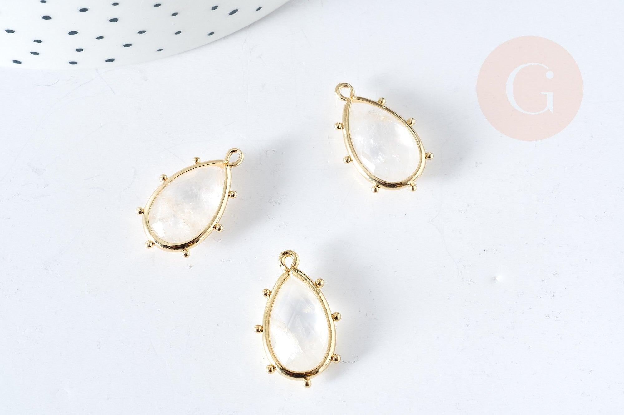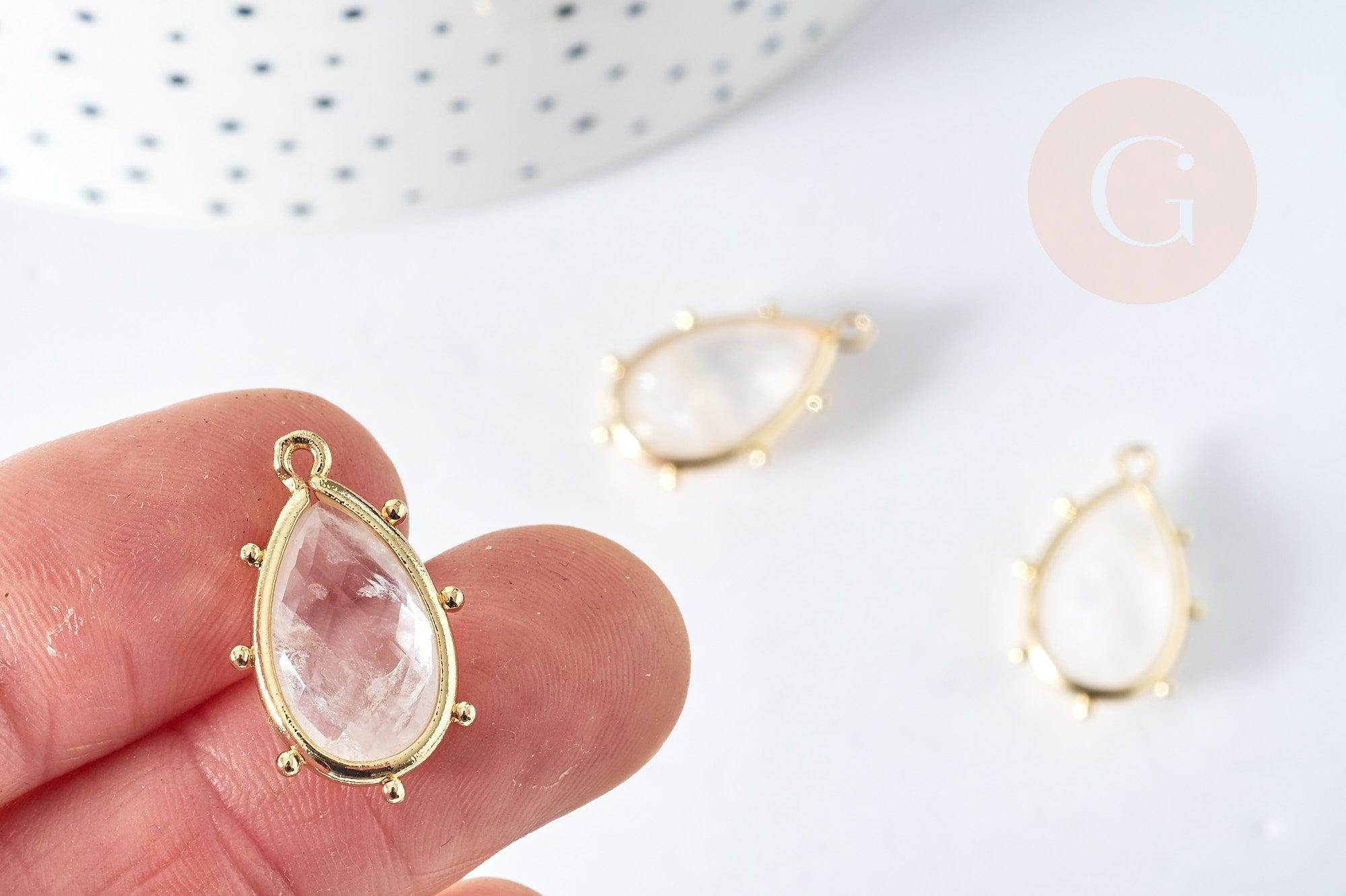Colgante gota de cristal de roca natural, latón dorado, 22,5 mm, colgante de joyería de piedra natural, x1, G8365