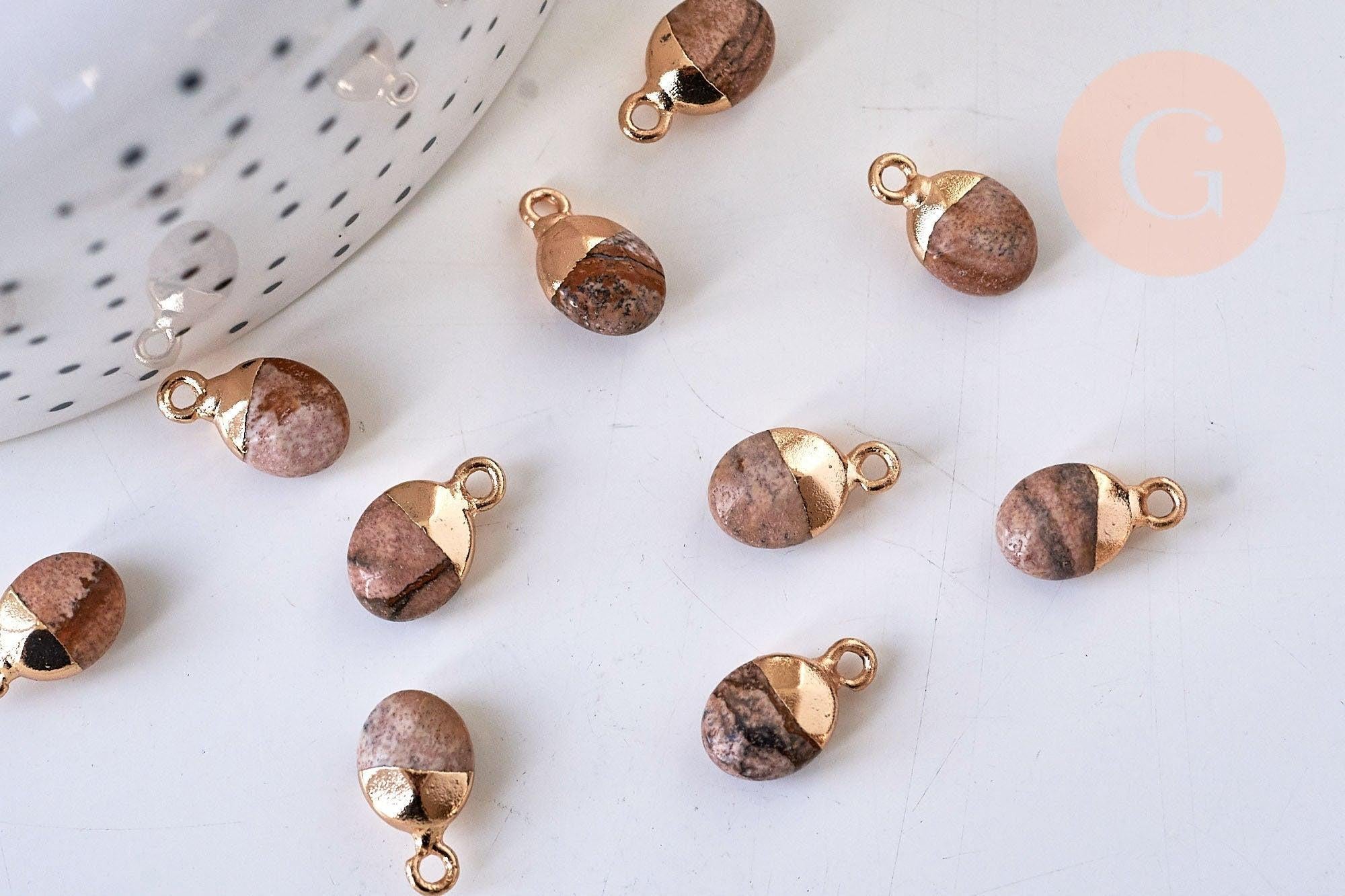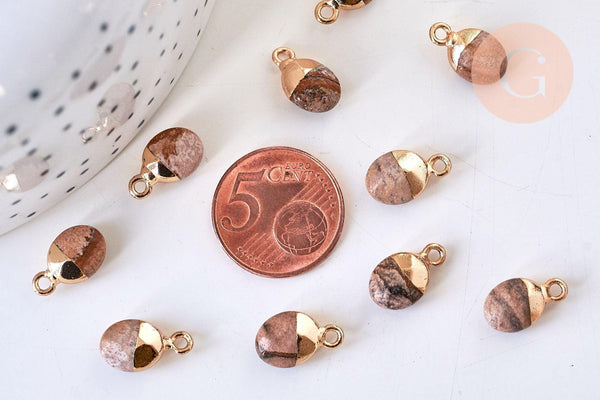 Déjate seducir por este pequeño colgante muy discreto de jaspe paisaje con su soporte de hierro dorado.