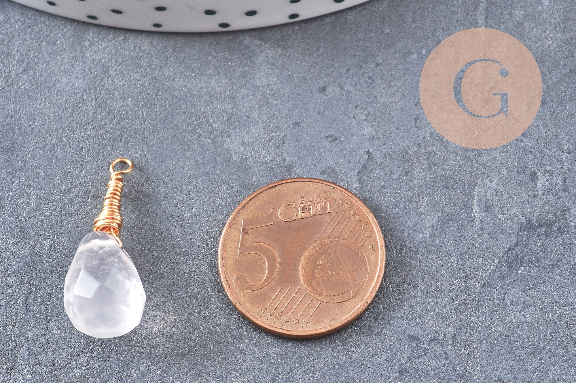 Déjate seducir por este colgante en forma de gota de piedra natural facetada montado sobre un soporte de zamac dorado . Cada piedra (labrodorita, amazonita, amatista, lapislázuli, cuarzo o cuarzo rosa) está facetada para obtener un resultado a la vez bruto y refinado. Este colgante es ideal para creaciones de joyería contemporánea con influencias místicas y naturales.
