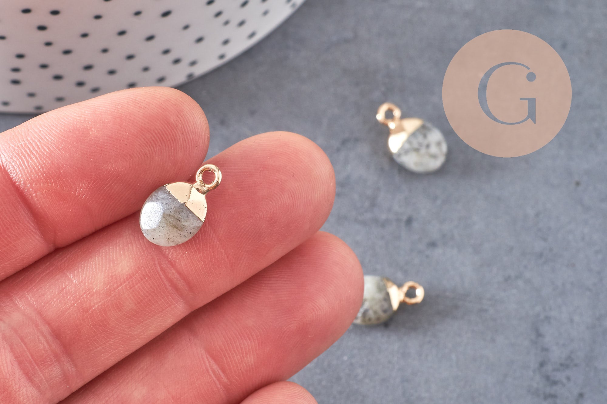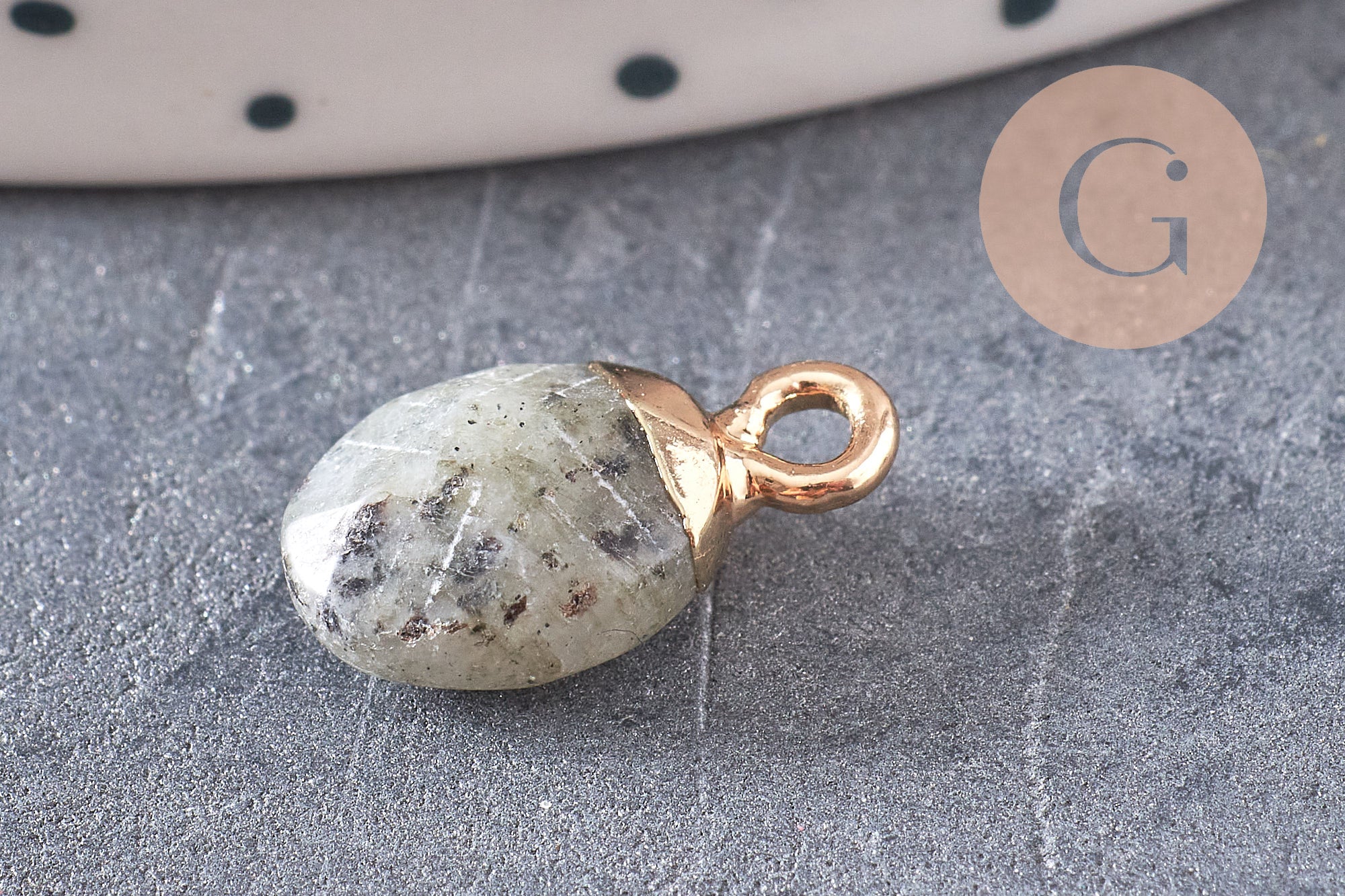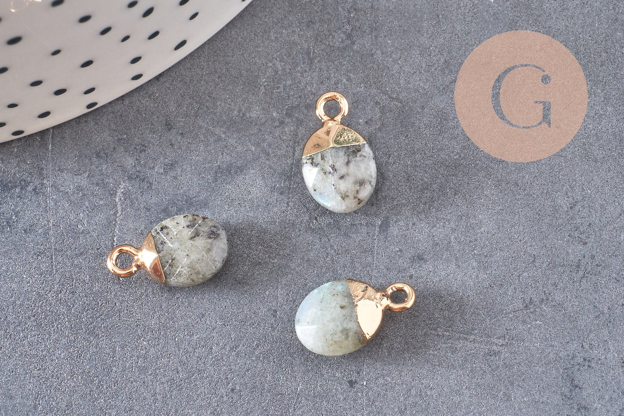 Déjate seducir por este pequeño colgante muy discreto de labradorita natural con su soporte de hierro dorado.