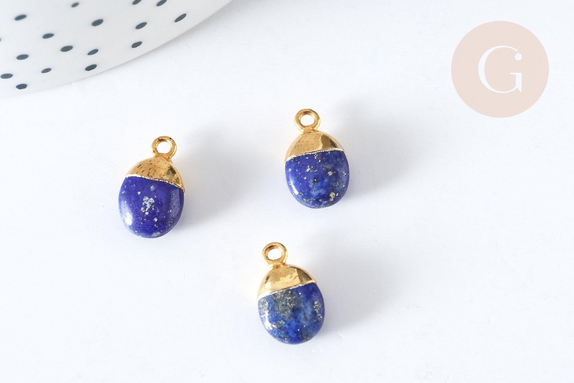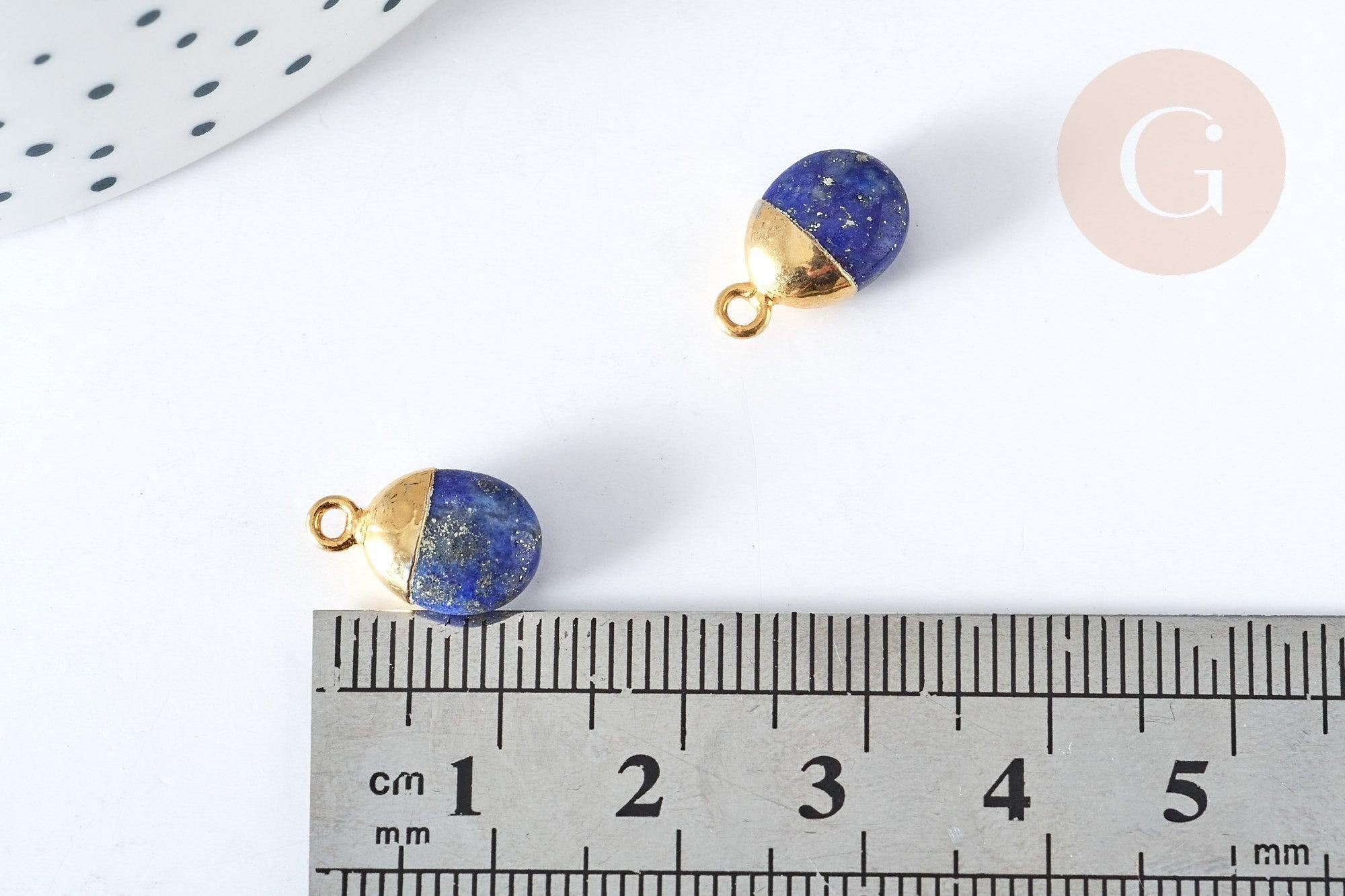 Pendentif goutte lapis lazulis naturel argent 925 doré 18K 20mm, x1 (G7722)