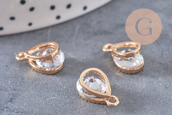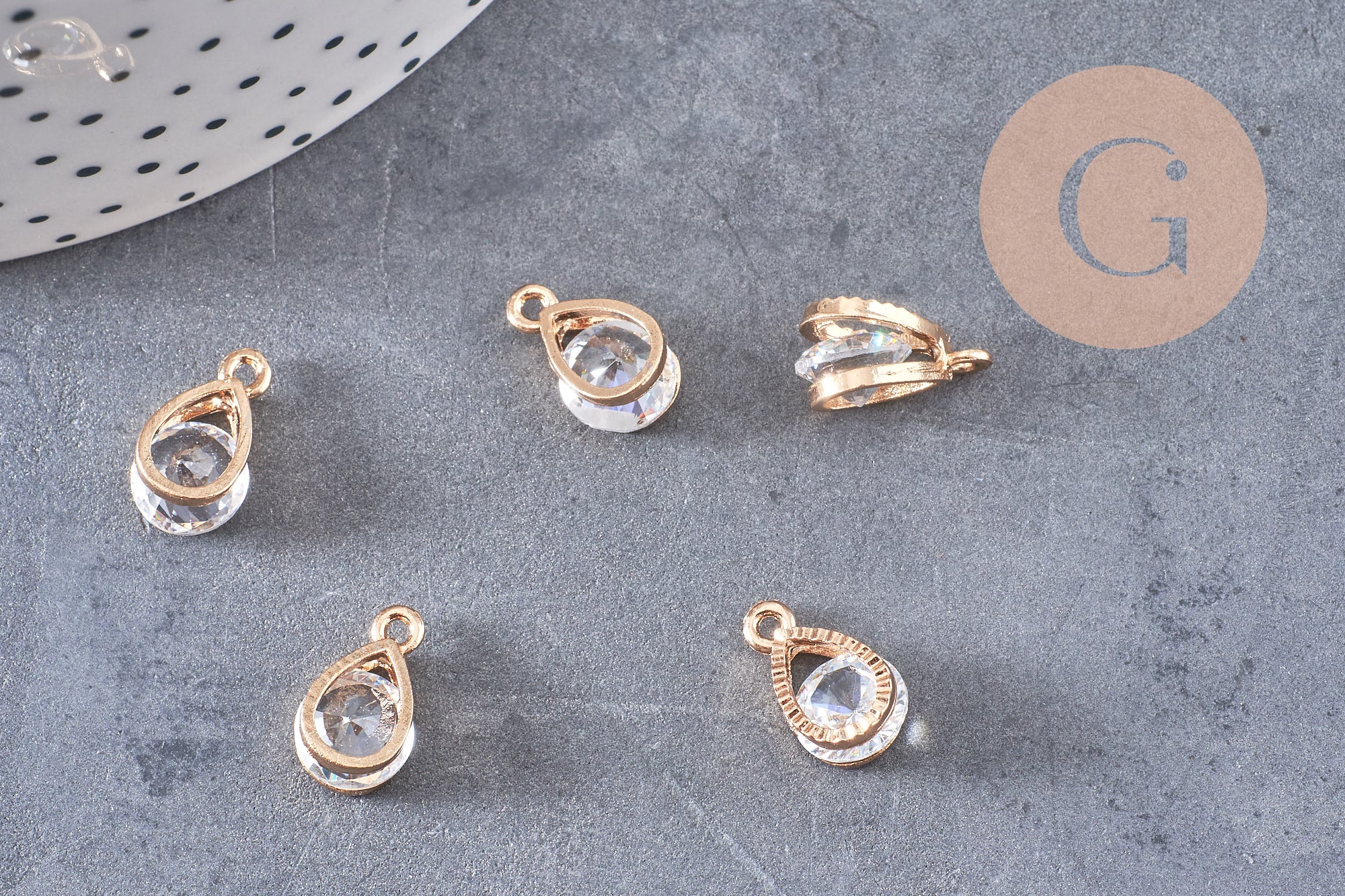 Colgante gota de zamac cristal circonita dorada 13mm, colgante dorado, colgante de cristal, joya dorada, creación de joyas, X4 (G6856)
