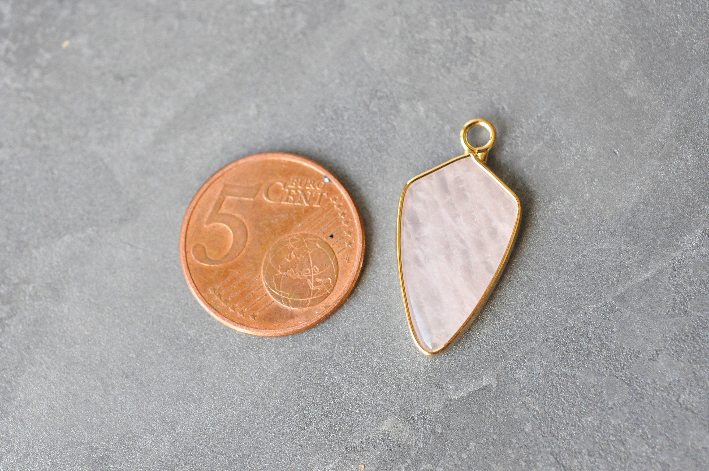 Colgante de cuarzo rosa en forma de gota de latón bañado en oro, colgante de joyería, colgante de piedra, cuarzo rosa natural, colgante de cuarzo rosa, 28 mm, unidad Déjate seducir por este pequeño colgante muy discreto de cuarzo rosa...
