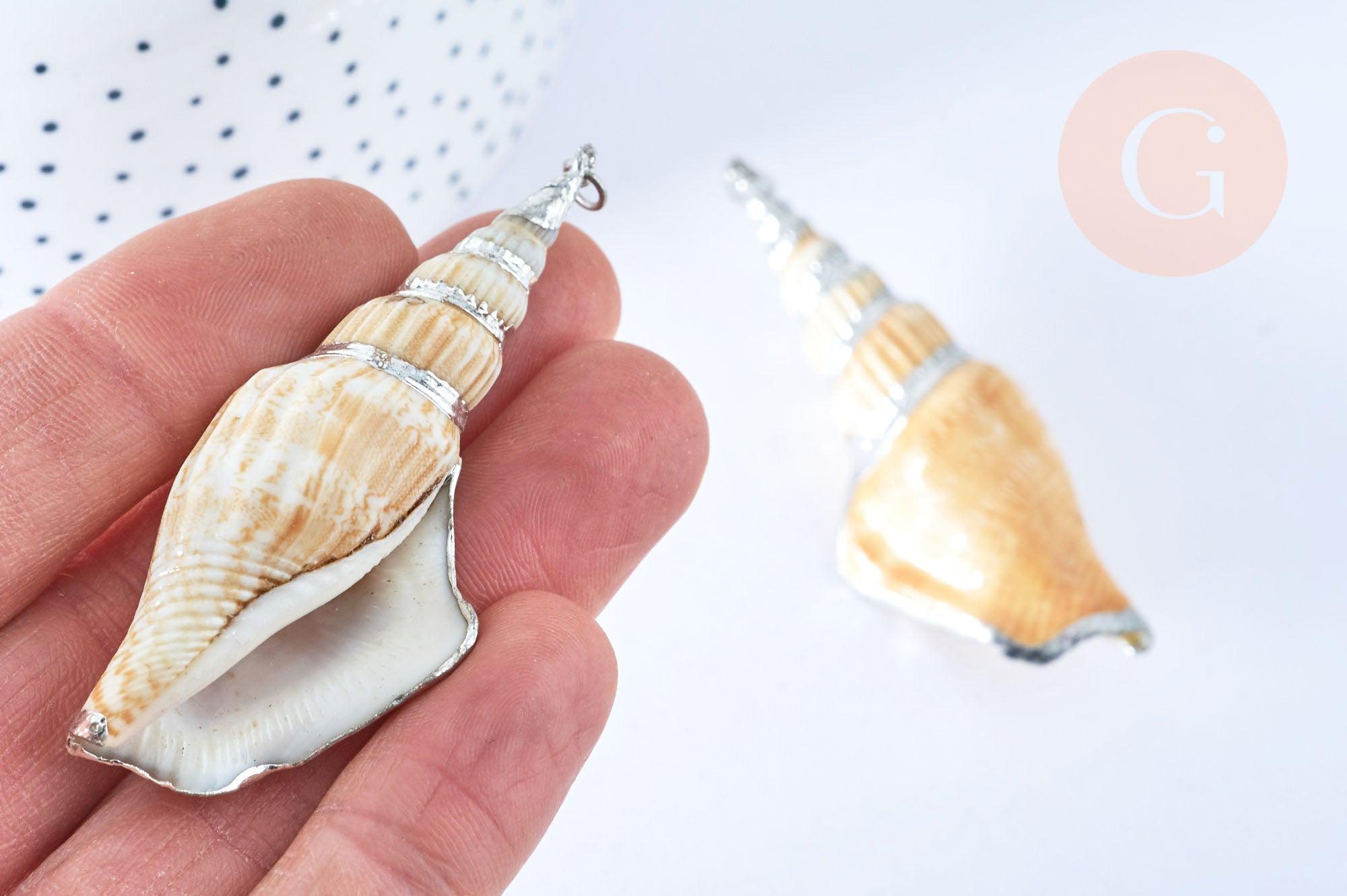 Colgante grande de concha natural espiral beige plateado 58-66mm, colgante de creación de joyas de concha, x1 G7160