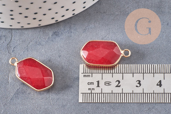 Pendentif hexagone jade rouge turquoise,pendentif pierre, support doré,création bijou,pierre naturelle,bijou pierre, jade naturel,25mm x1 G1870
