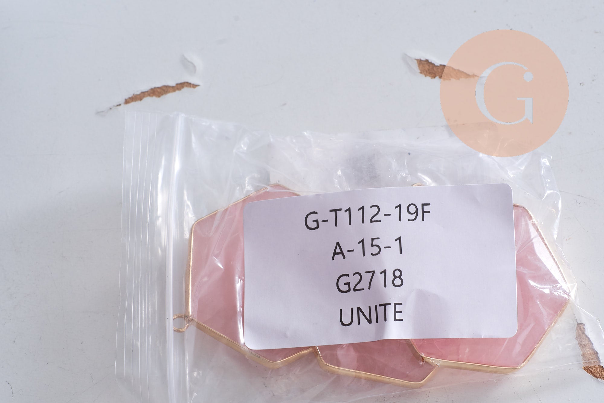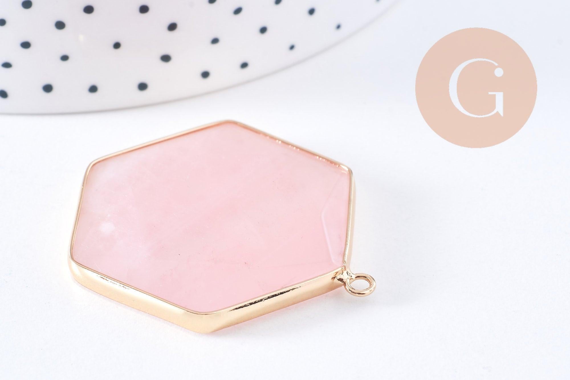 Aporta suavidad y elegancia a tus creaciones con este gran colgante de cuarzo rosa natural , tallado en forma de hexágono y rodeado de latón dorado . Símbolo de amor y ternura, el cuarzo rosa es una piedra apreciada por sus propiedades calmantes y reconfortantes.