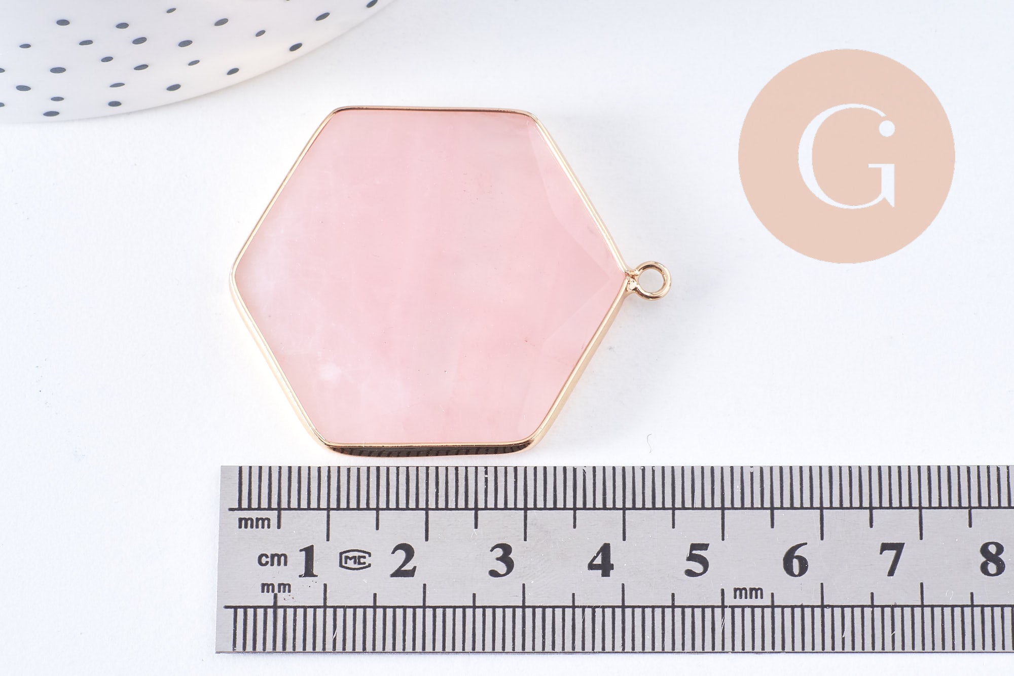 Colgante hexagonal de cuarzo rosa, colgante de piedra, colgante de collar, piedra natural, colgante de cuarzo, cuarzo rosa natural, 45 mm, G2718