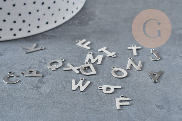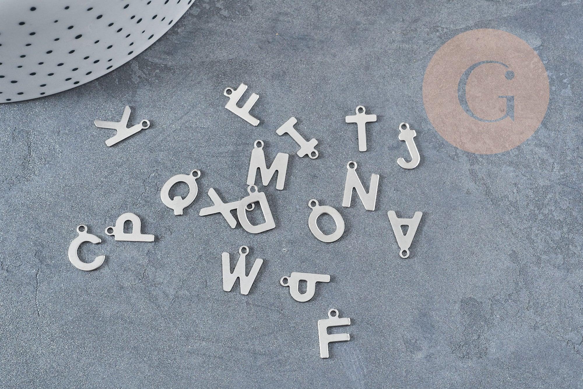 Este dije de letra del alfabeto en plata y acero inoxidable 201 representa las letras del alfabeto en mayúsculas. Sencillo y moderno, te inspirará a crear joyas personalizadas para hombre o mujer . ¡Una bonita bisutería DIY es tuya!