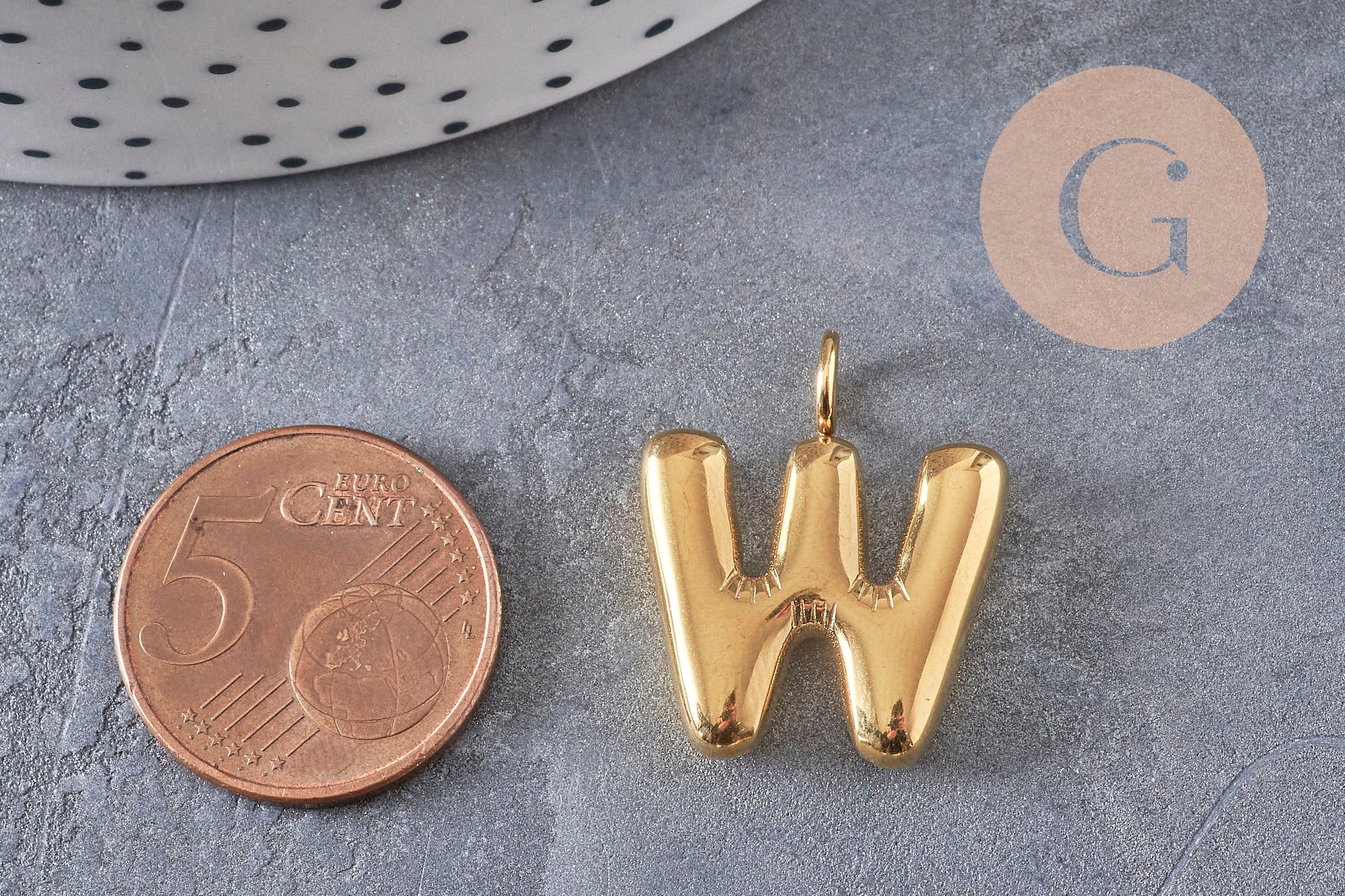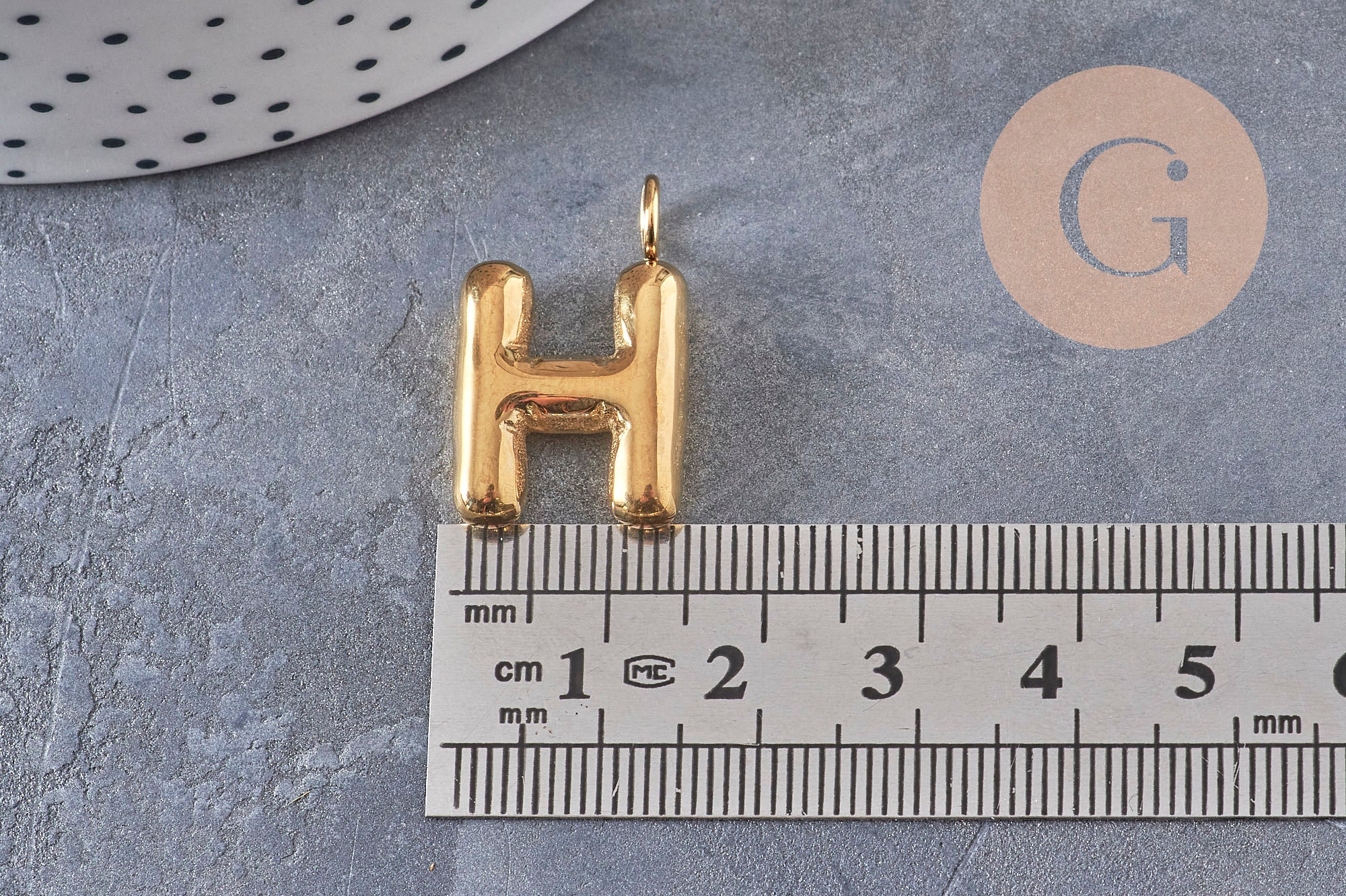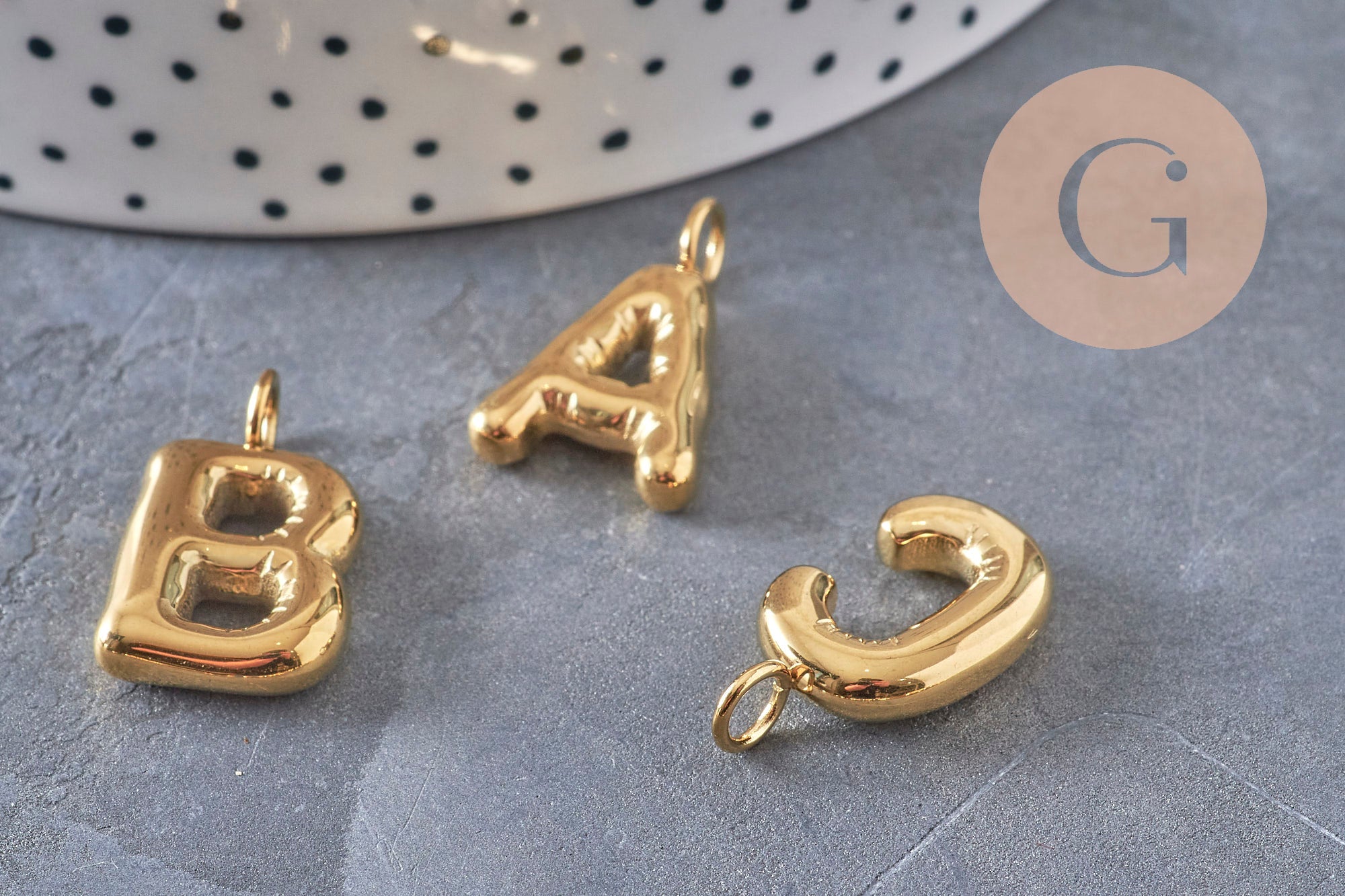 Dale un toque divertido, moderno y ultramoderno a tus creaciones con este colgante de letra de globo de acero inoxidable chapado en oro . Su diseño de globo inflado le da un toque alegre, atrevido y brillante, perfecto para crear joyas personalizadas llamativas. Inicial, nombre, palabra inspiradora o combinación simbólica… todo es posible con este brillante dije en relieve.
