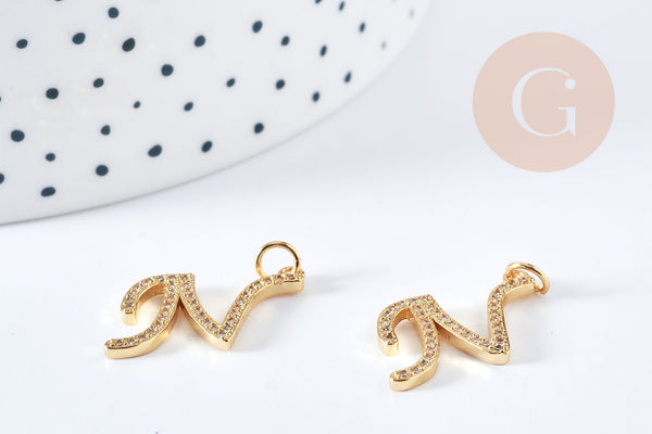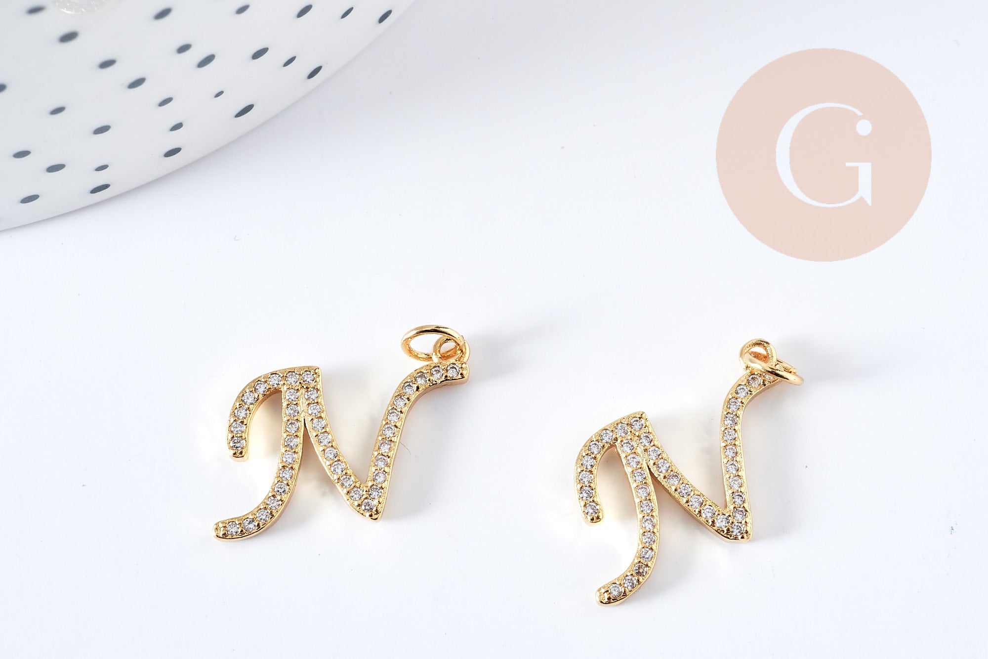 Colgante inicial letra N de latón bañado en oro con circonita blanca 16 mm, colgante inicial del nombre x1 G8758