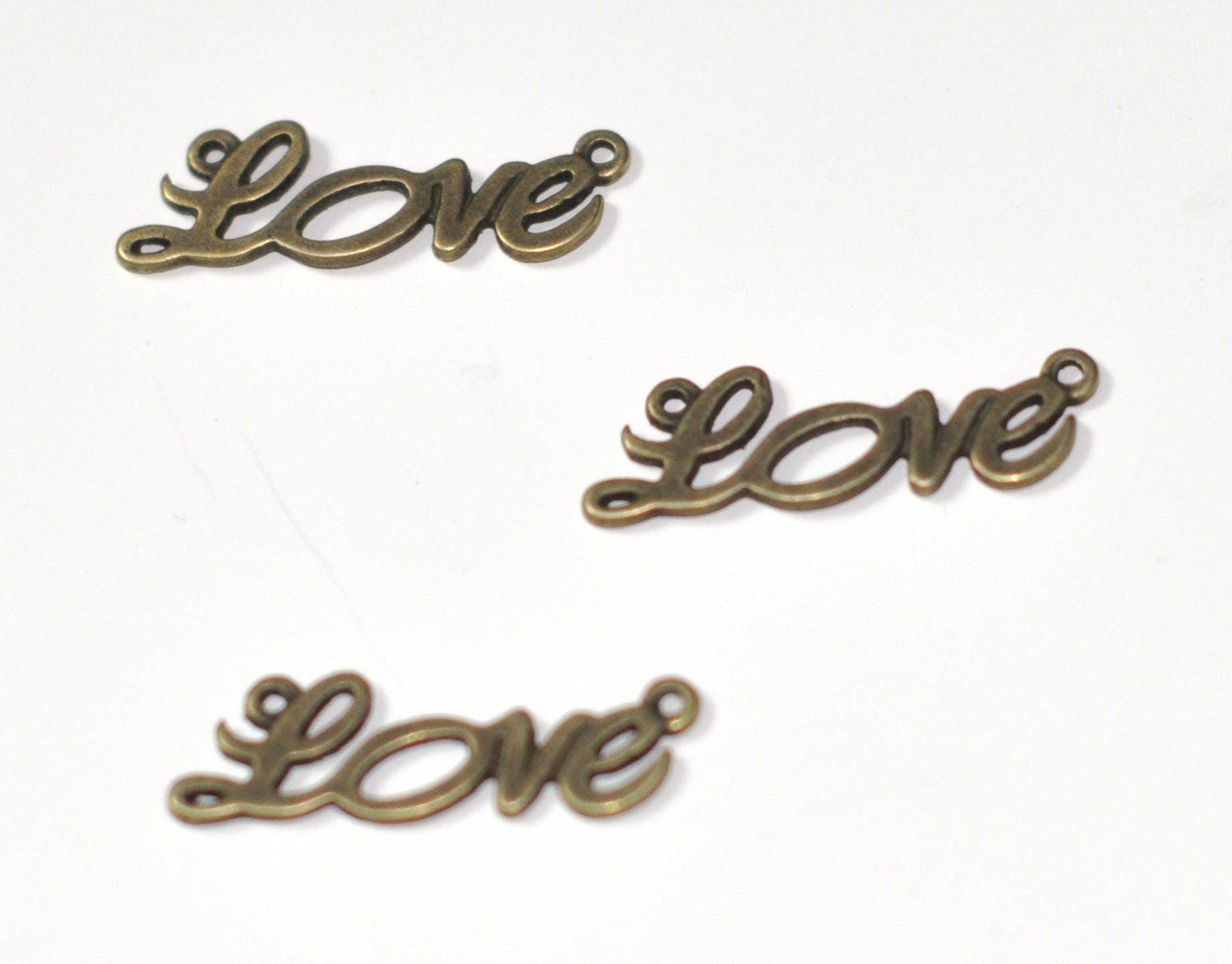Colgante de bronce LOVE, suministros creativos, colgante de bronce, encanto de bronce, conector de collar, creación de joyas, 3cm Un bonito colgante LOVE - charm en metal color bronce. Piezas ideales para realizar un collar o una pulsera. Este colgante...