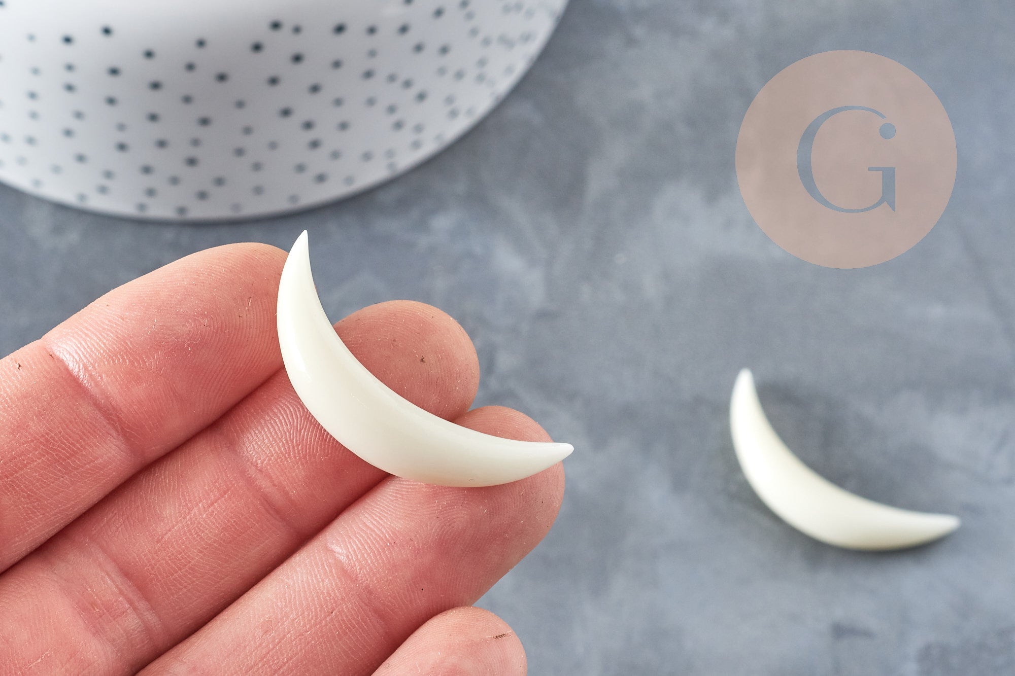 ¡Adopta este colgante de media luna de cuerno blanco ! Su color neutro y su elegante diseño te inspirarán a crear tu bisutería DIY .
