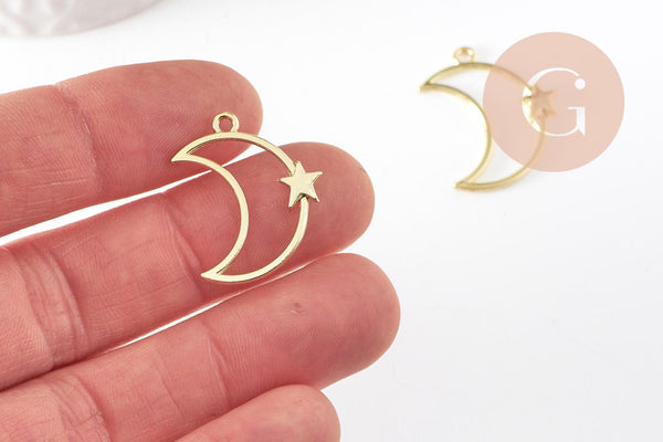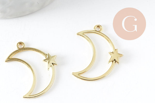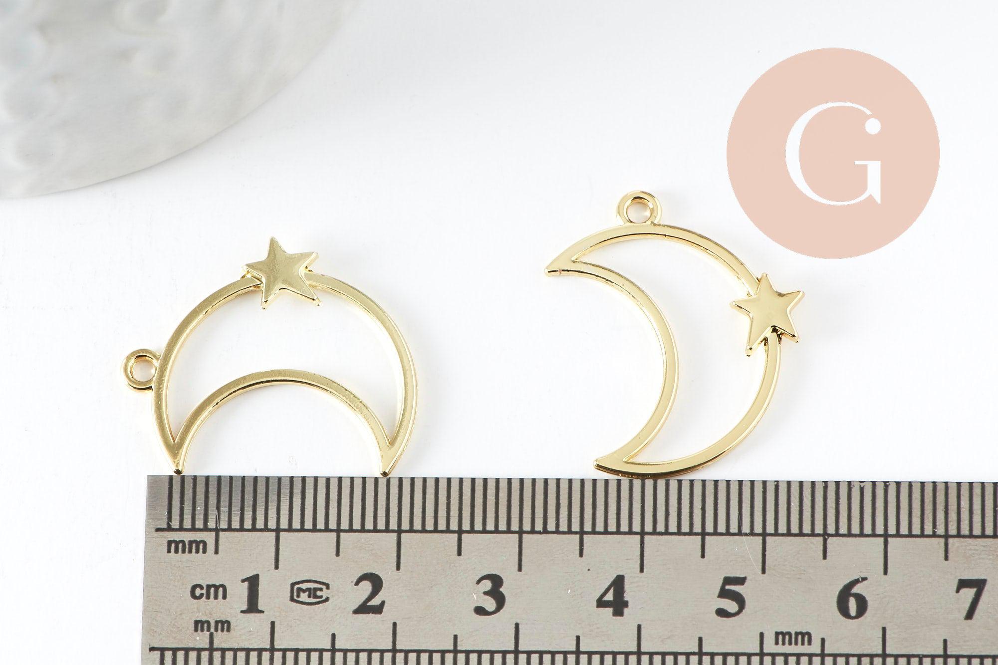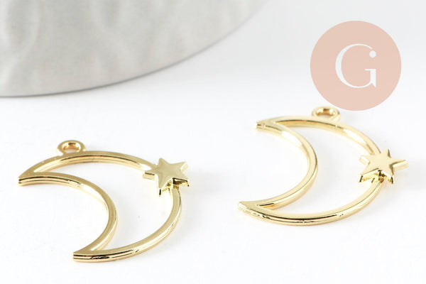 Colgante Luna Estrella de zamac bañado en oro de 25 mm, colgante de creación de joyería bañado en oro, x1 (G7503)