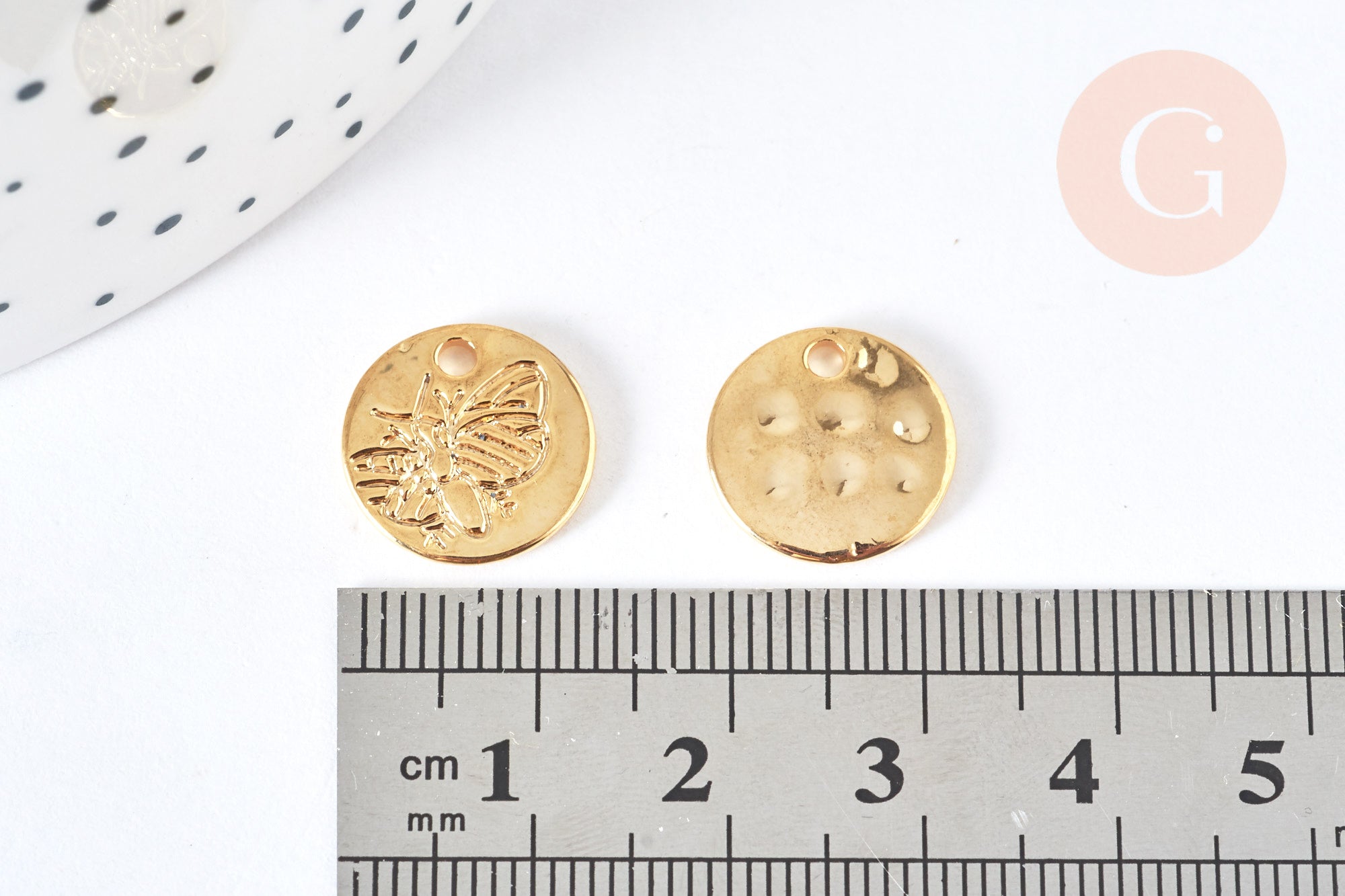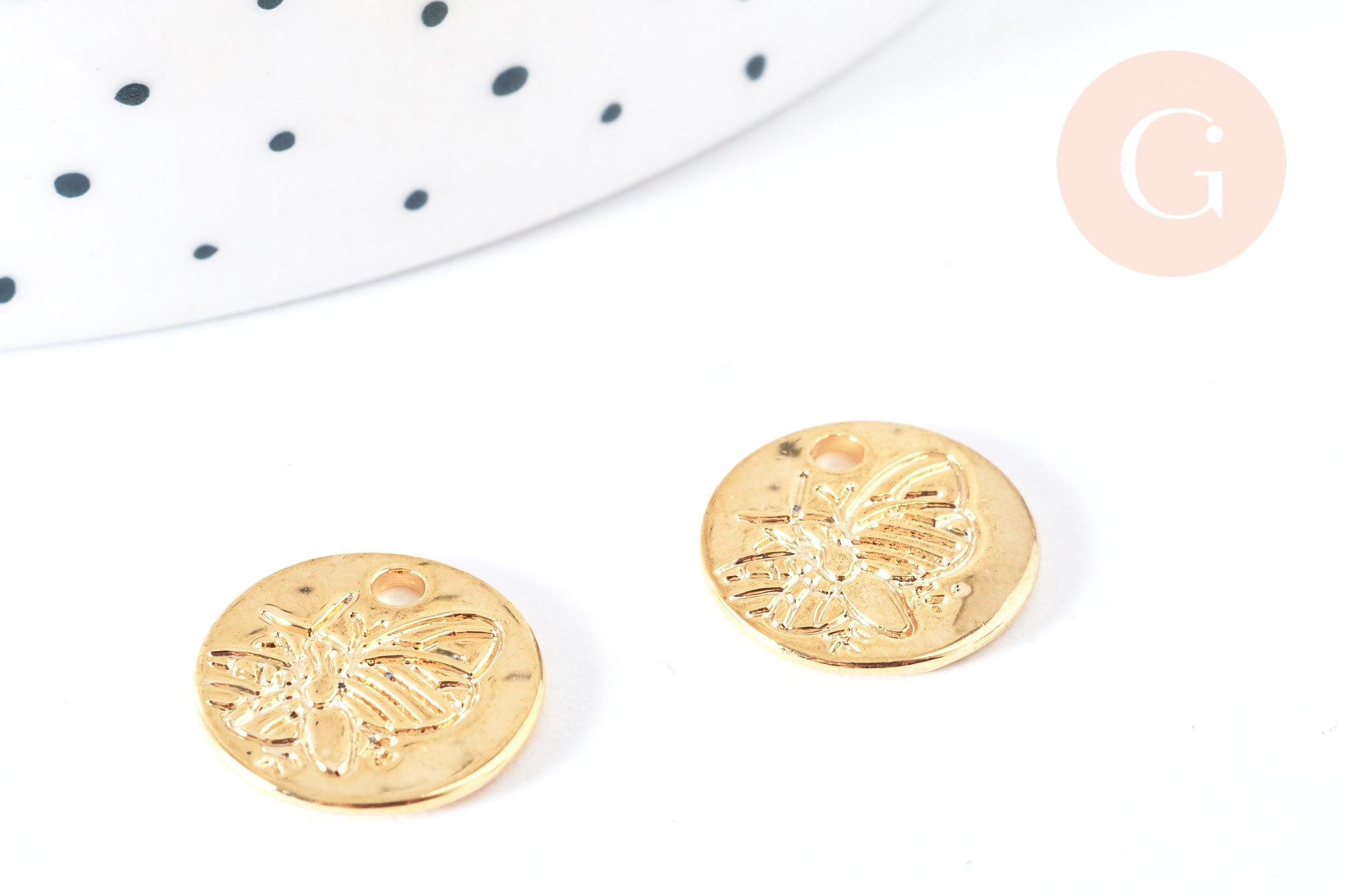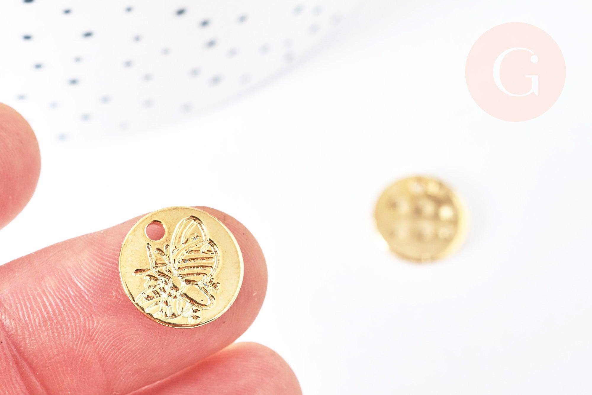 Colgante de medalla de abeja de circonio de latón dorado de 18 quilates y 13 mm, suministros de joyería, dije de latón dorado, x1 G7121
