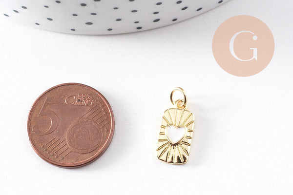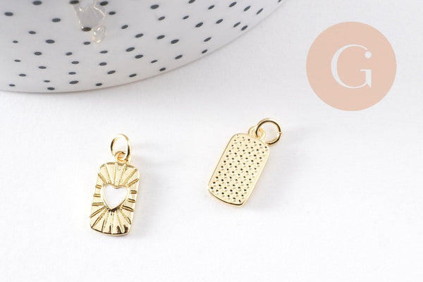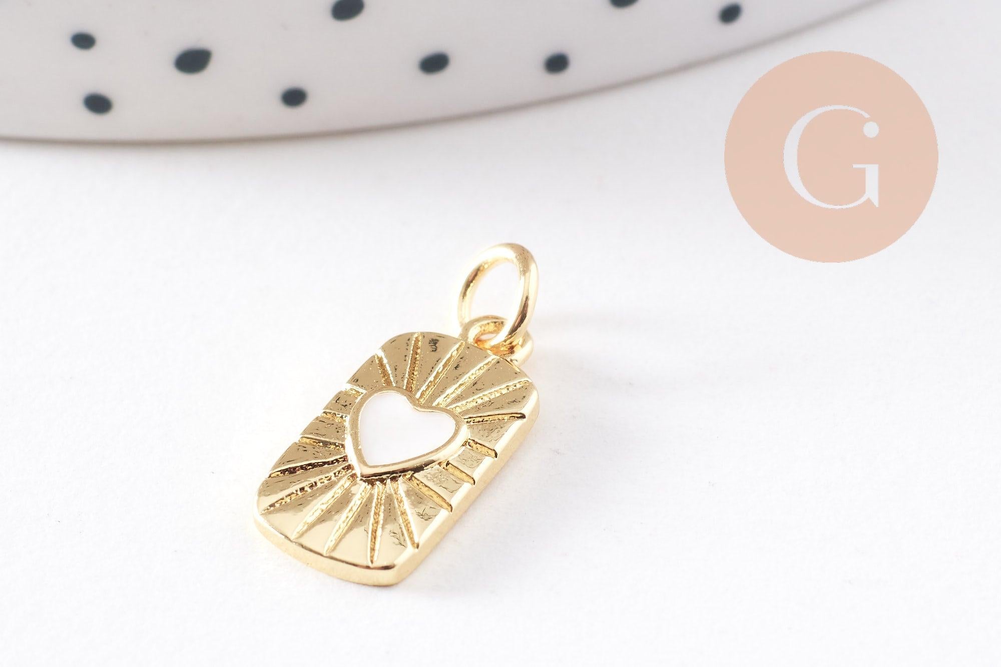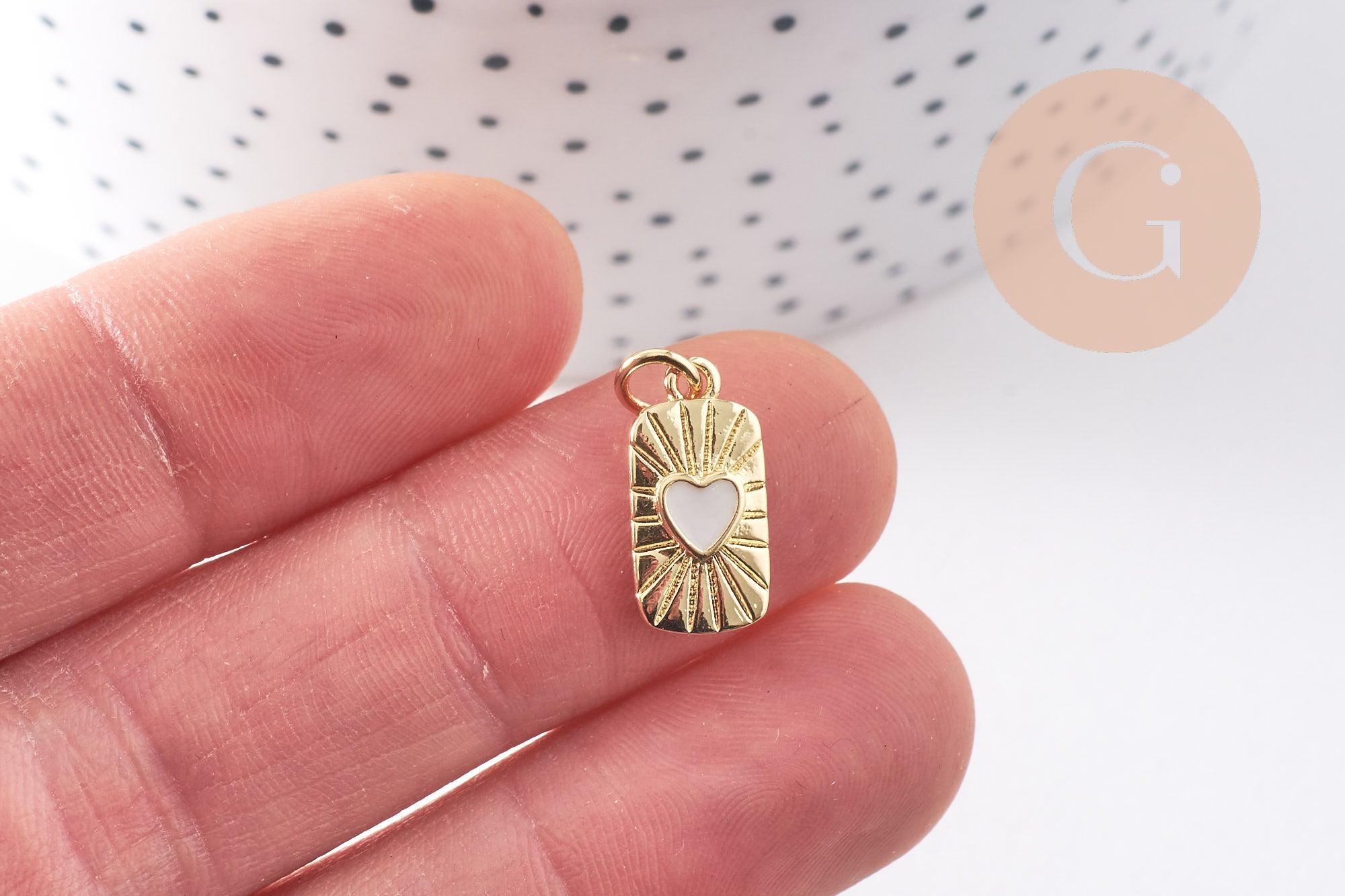 Realza tus creaciones de joyería con este colgante rectangular decorado con un corazón de nácar natural en latón dorado . Delicado y refinado, es perfecto para diseños románticos y atemporales.