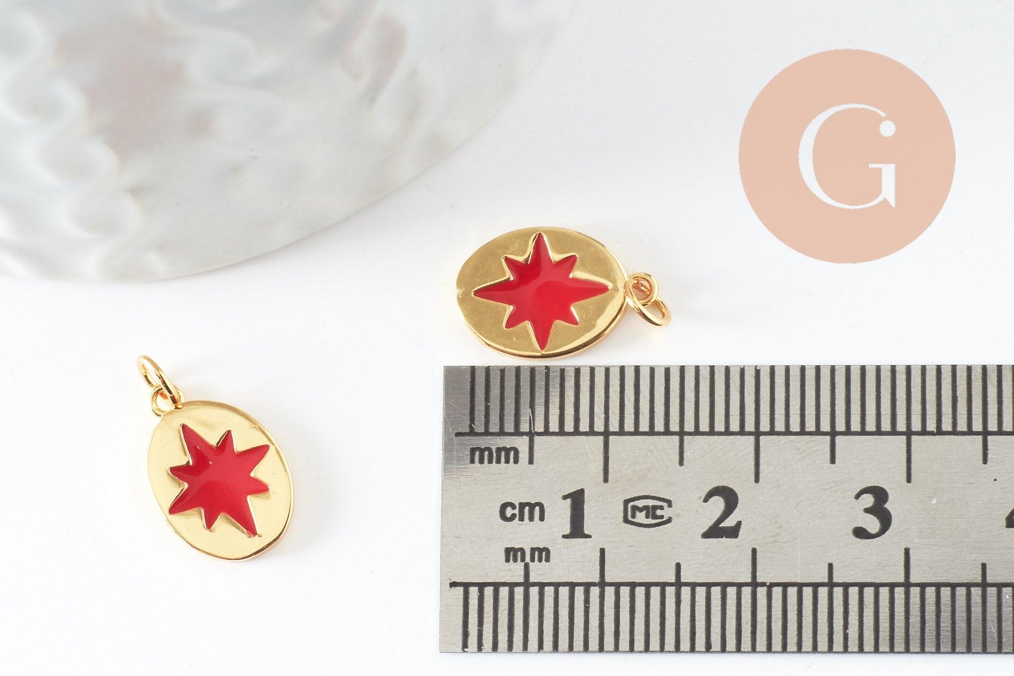 Un pequeño colgante medalla con estrella esmaltada en rojo y latón bañado en oro de 20K, accesorios para tener siempre en tu caja de herramientas para realizar todas tus joyas.