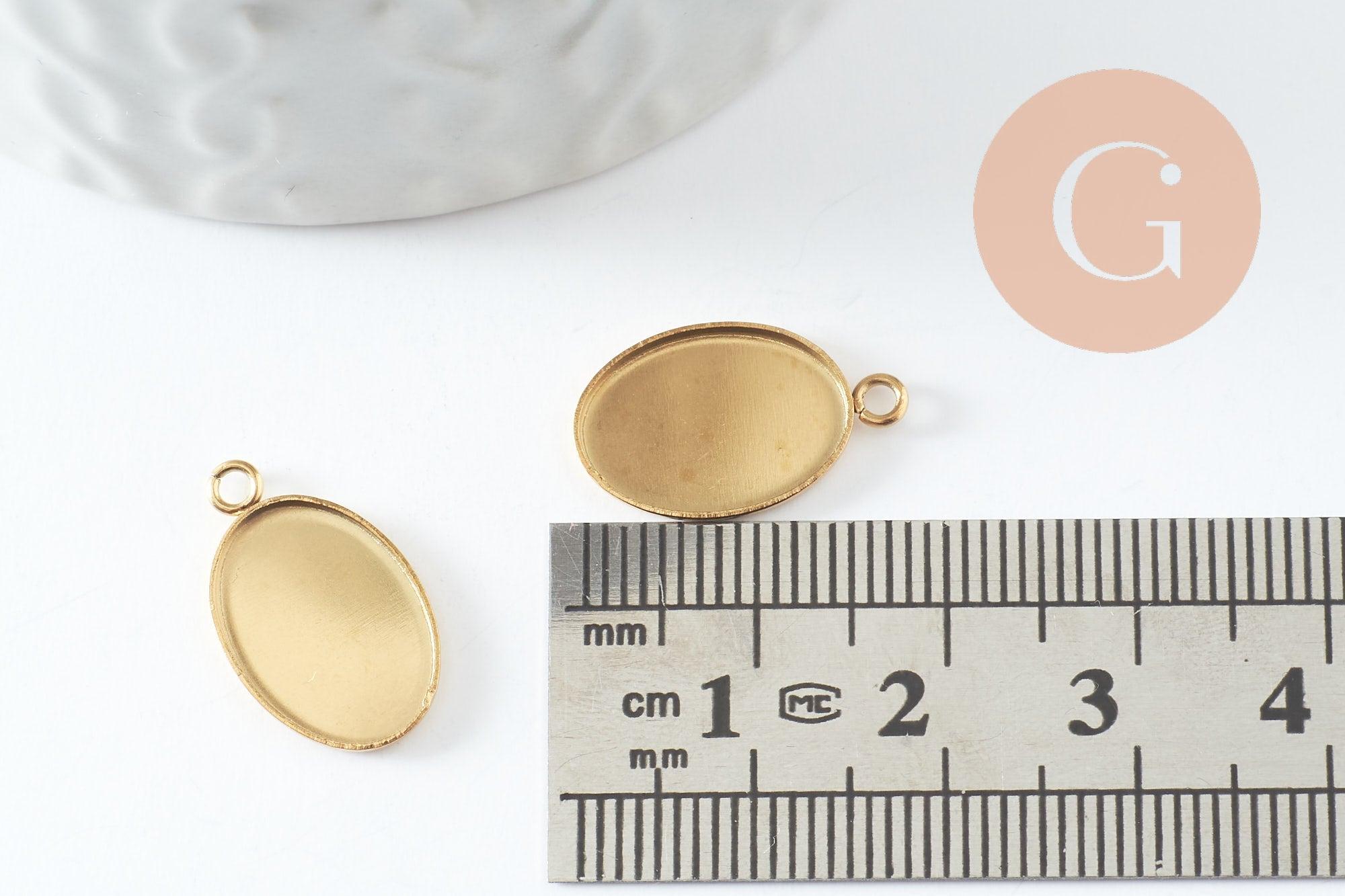 Pendentif médaille ovale support cabochon acier 304 inoxydable doré IP 14x10mm, x2 (G9814)