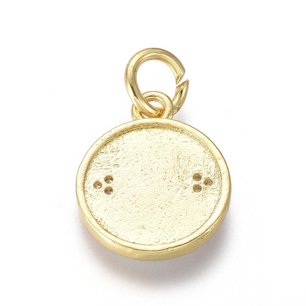 Colgante de medalla redonda con ojo de esmalte rojo, latón bañado en oro de 18 quilates y cristal de circonita, colgante de latón love para creación de joyas, 16 mm, x1 (G3298)