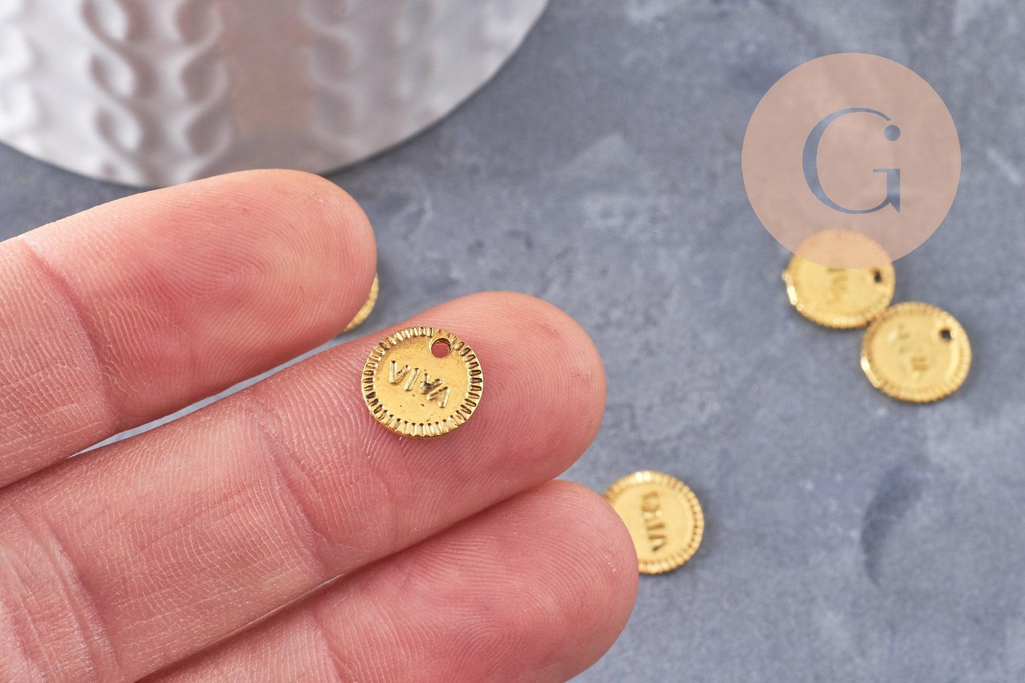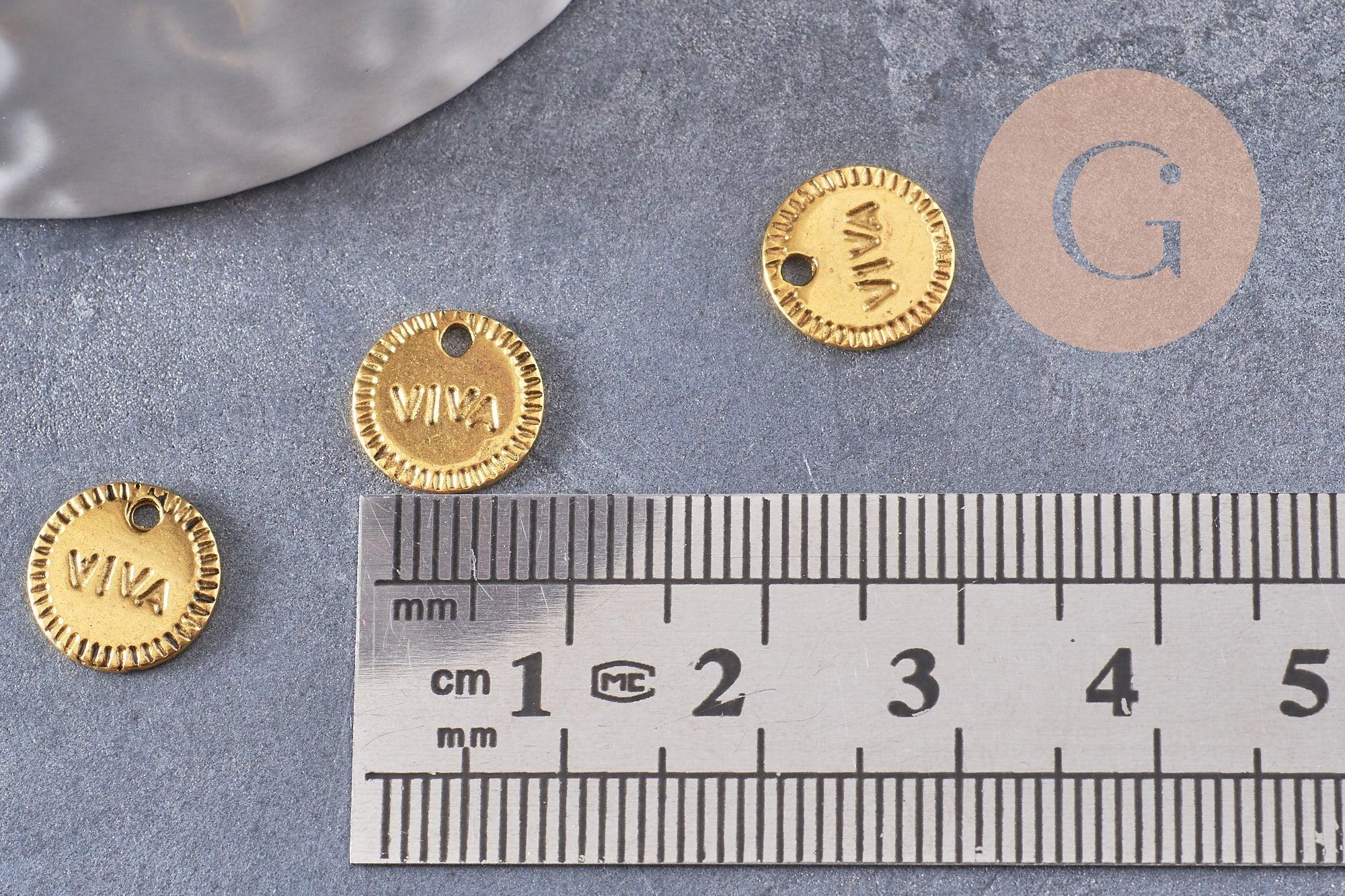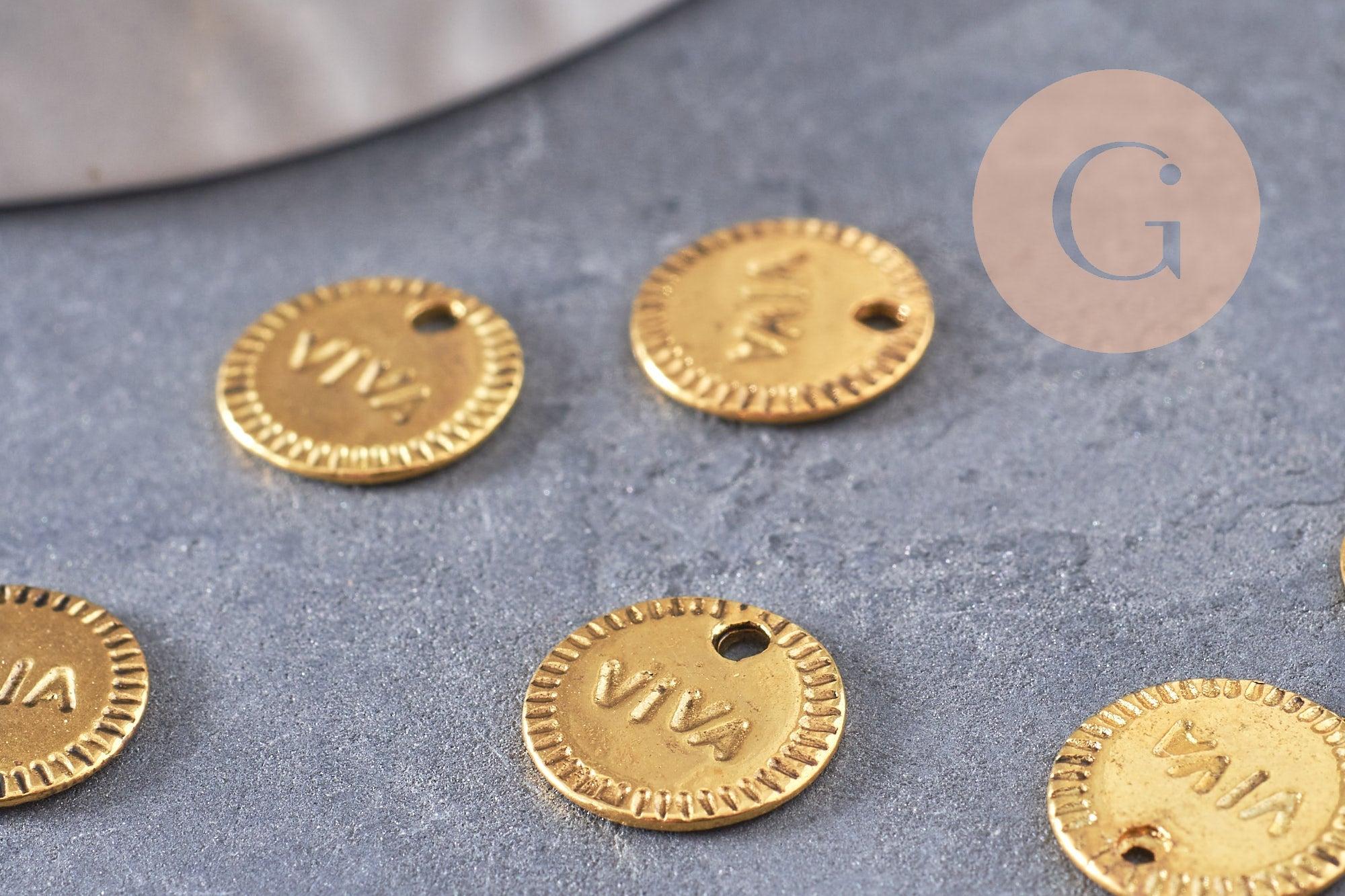 Dale un toque simbólico y positivo a tus creaciones con este colgante redondo "Viva" de zamac bañado en oro . Perfecto para personalizar tus joyas o accesorios, ¡esta encantadora medalla le dará un toque de energía a tus creaciones DIY!