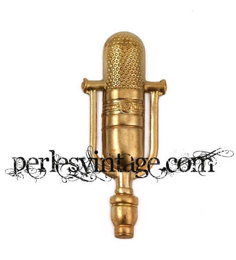 Un dije colgante de MICRÓFONO de latón en bruto para crear un collar sobre el tema de la música, el canto y la radio. Altura: 3,7 cm Otros amuletos de latón están disponibles en la tienda de abalorios y accesorios...