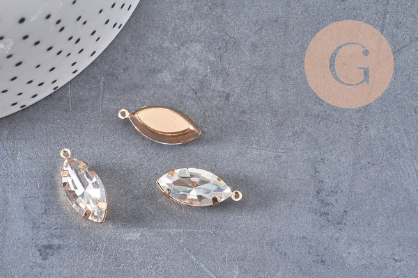 Pendentif navette cristal,pendentif cristal, pendentif doré,cristal blanc,création bijoux,marquise dorée,21mm-G1095