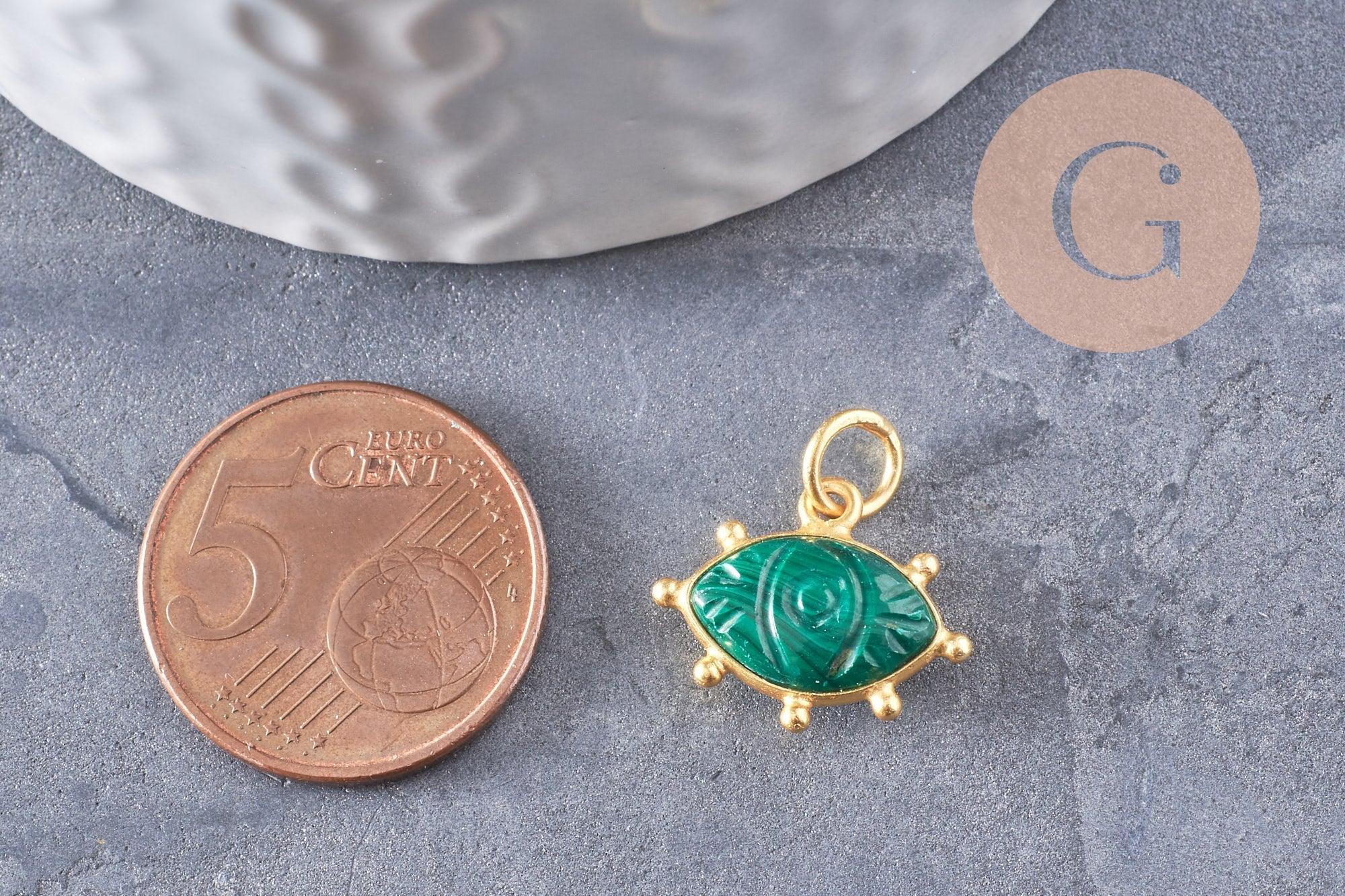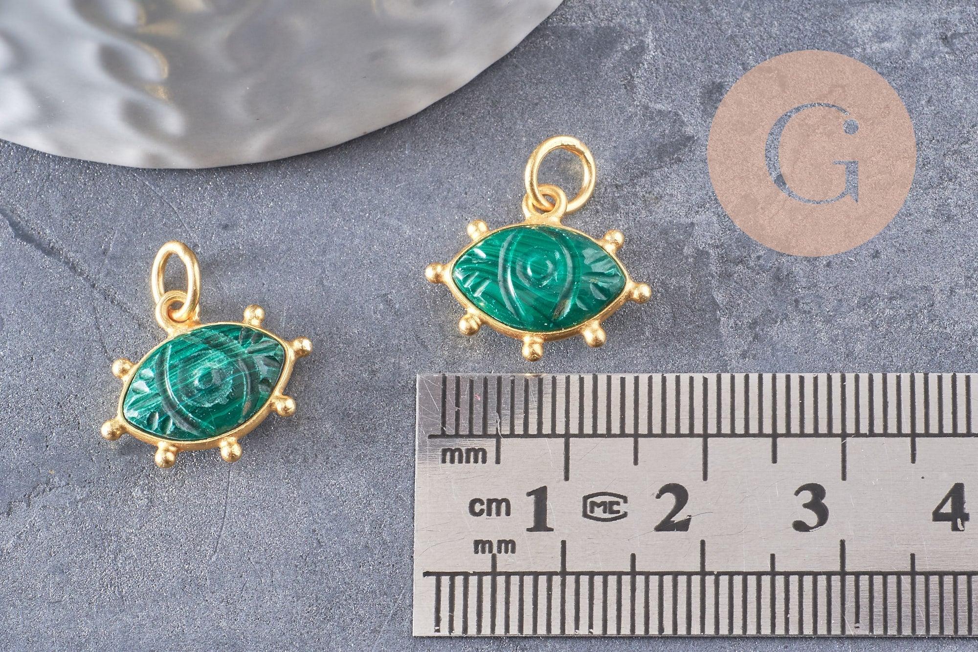 Colgante ojo de malaquita natural plata 925 dorada 18K 15mm, colgante amuleto de piedra natural x1 (G9865)