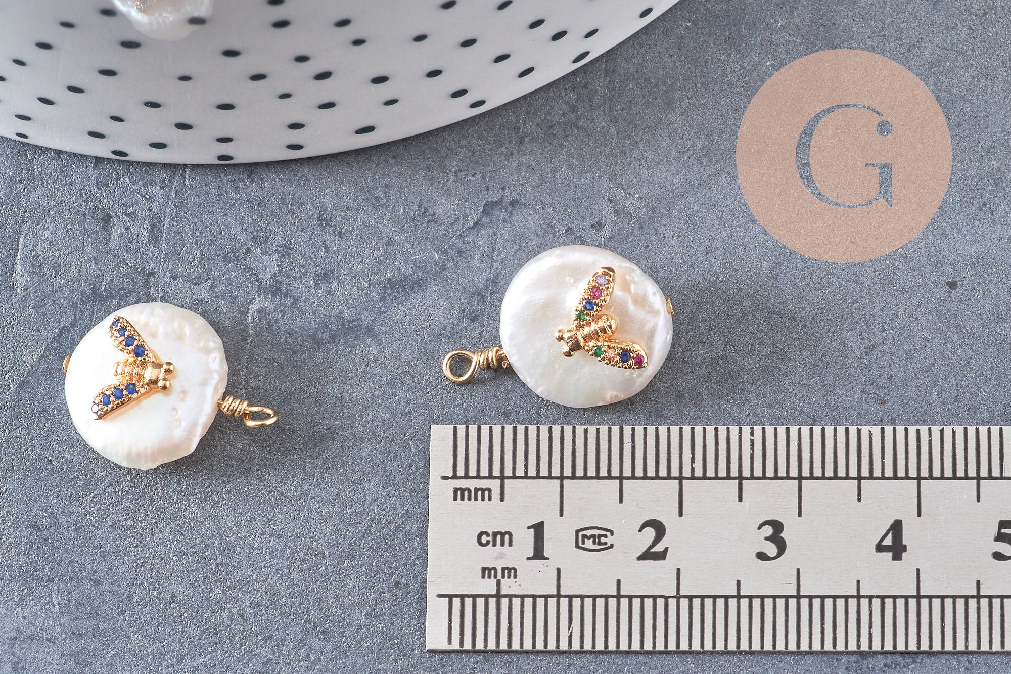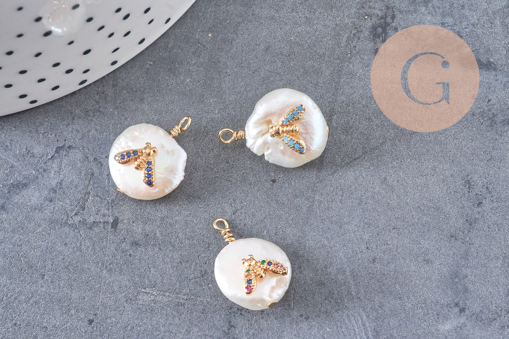 Colgante Keshi de abeja con circonita y perla natural, amuleto de la suerte, perla de agua dulce, diseño de joyería, perla natural blanca, 17-26 mm, se vende por unidad