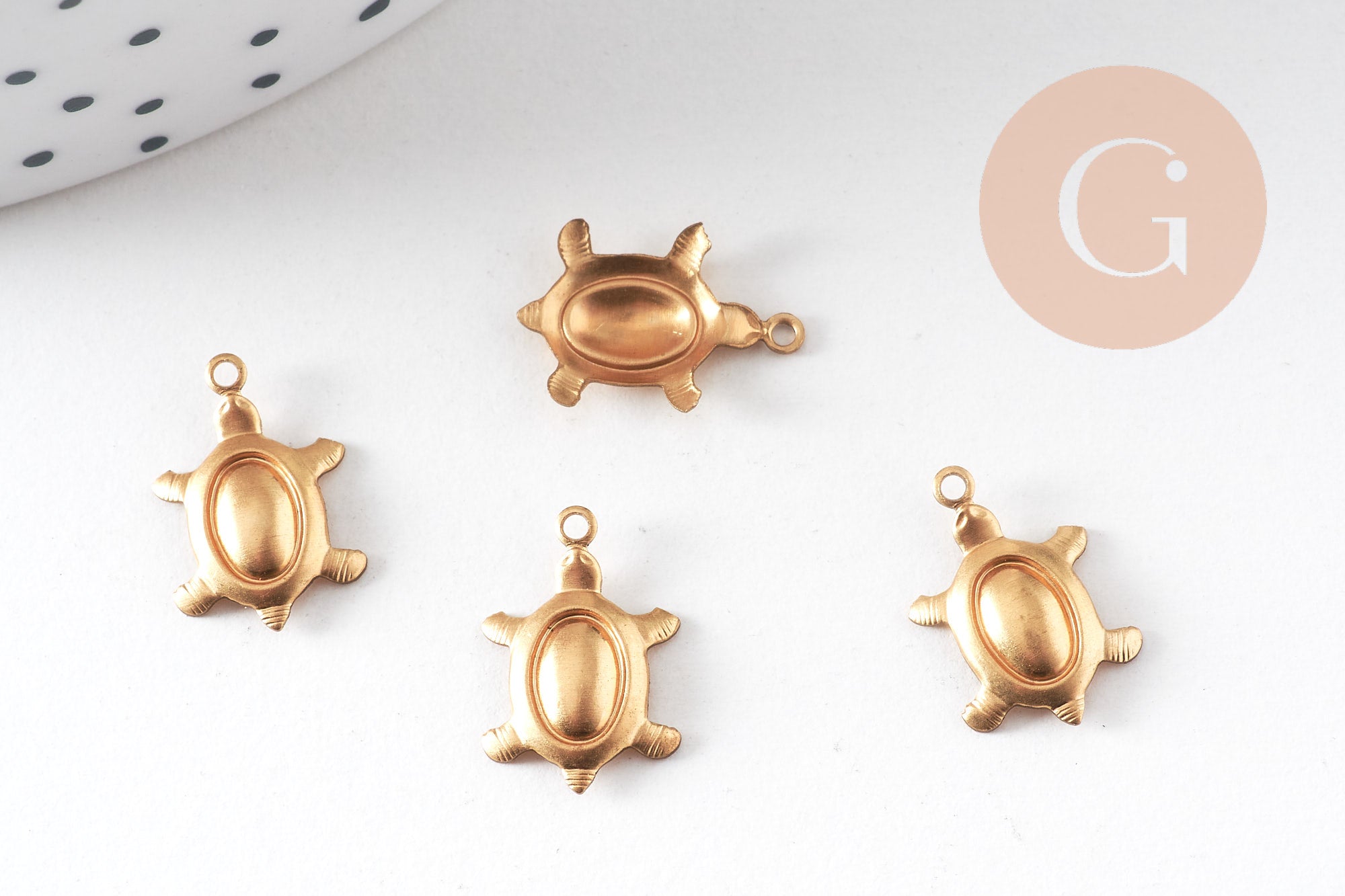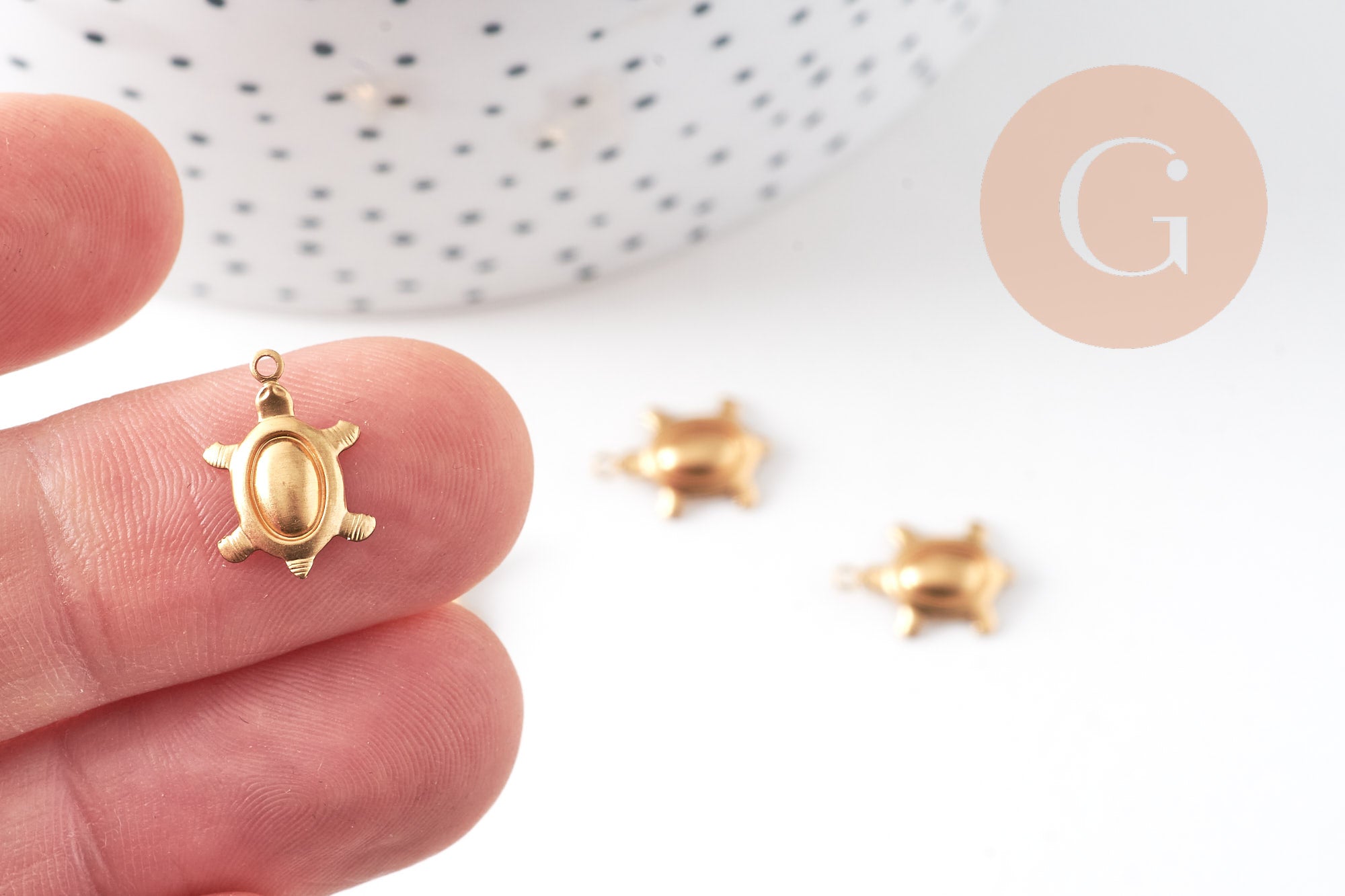 Colgante de una pequeña tortuga en latón dorado, ideal para crear un collar o pendientes sobre el tema de los animales, exostime.