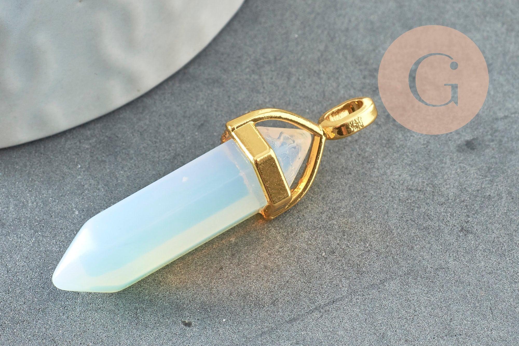 Colgante de punta de opalita opaca de zamac dorado 37~40mm, colgante de joyería de piedra, opalita natural, 37~40mm, x1 G0087