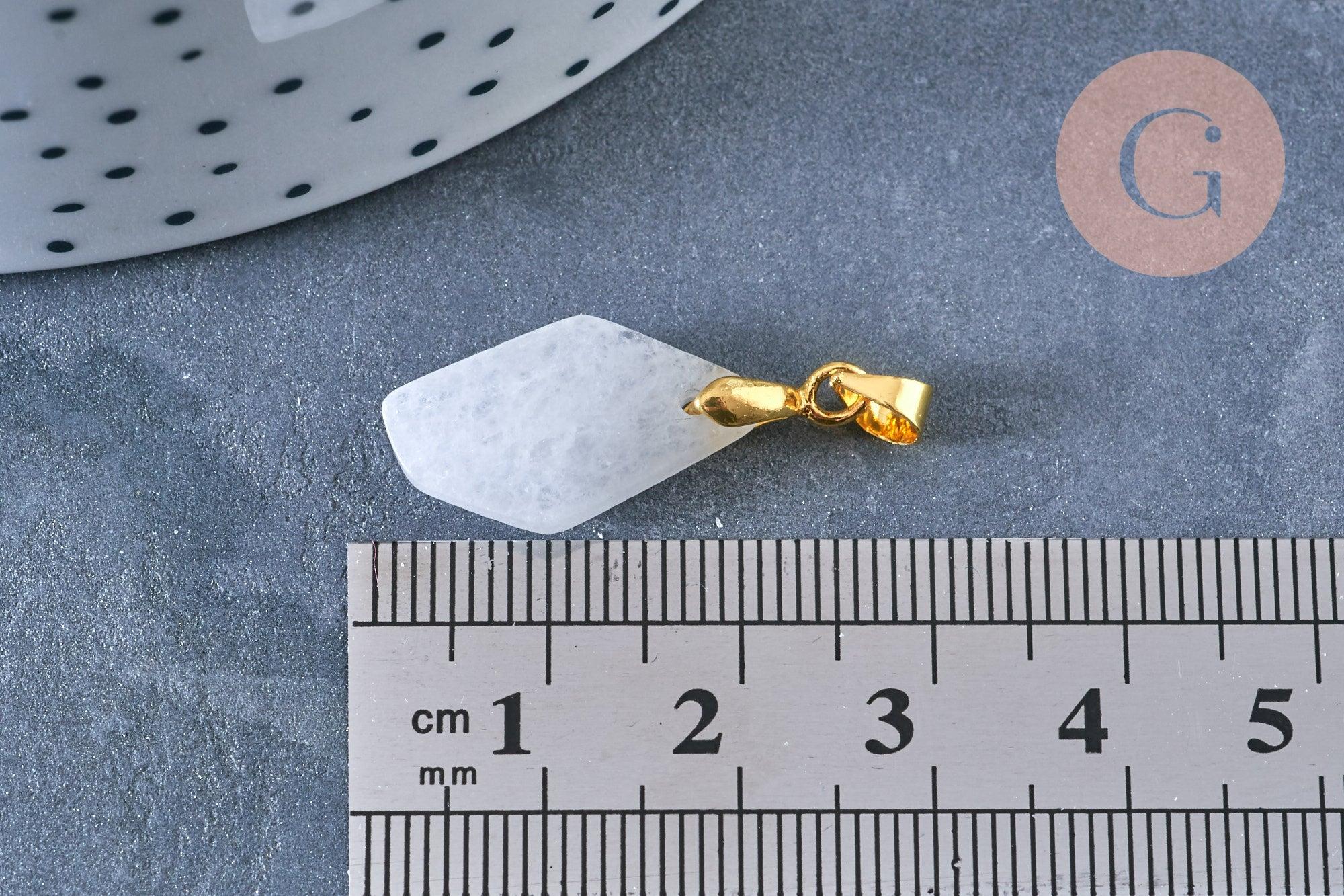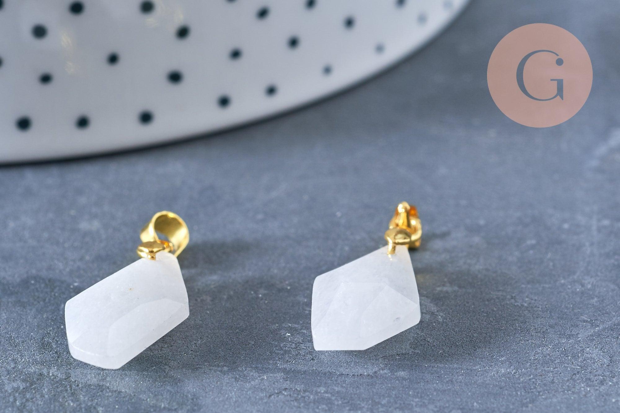 Pendentif polygone facettée jade naturel blanc laiton doré 19,5mm, création bijoux pierre naturelle, x1 G7154