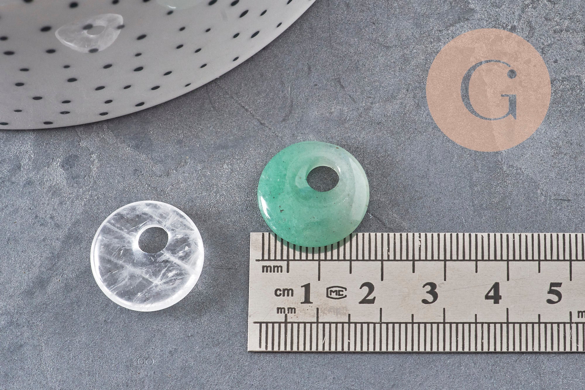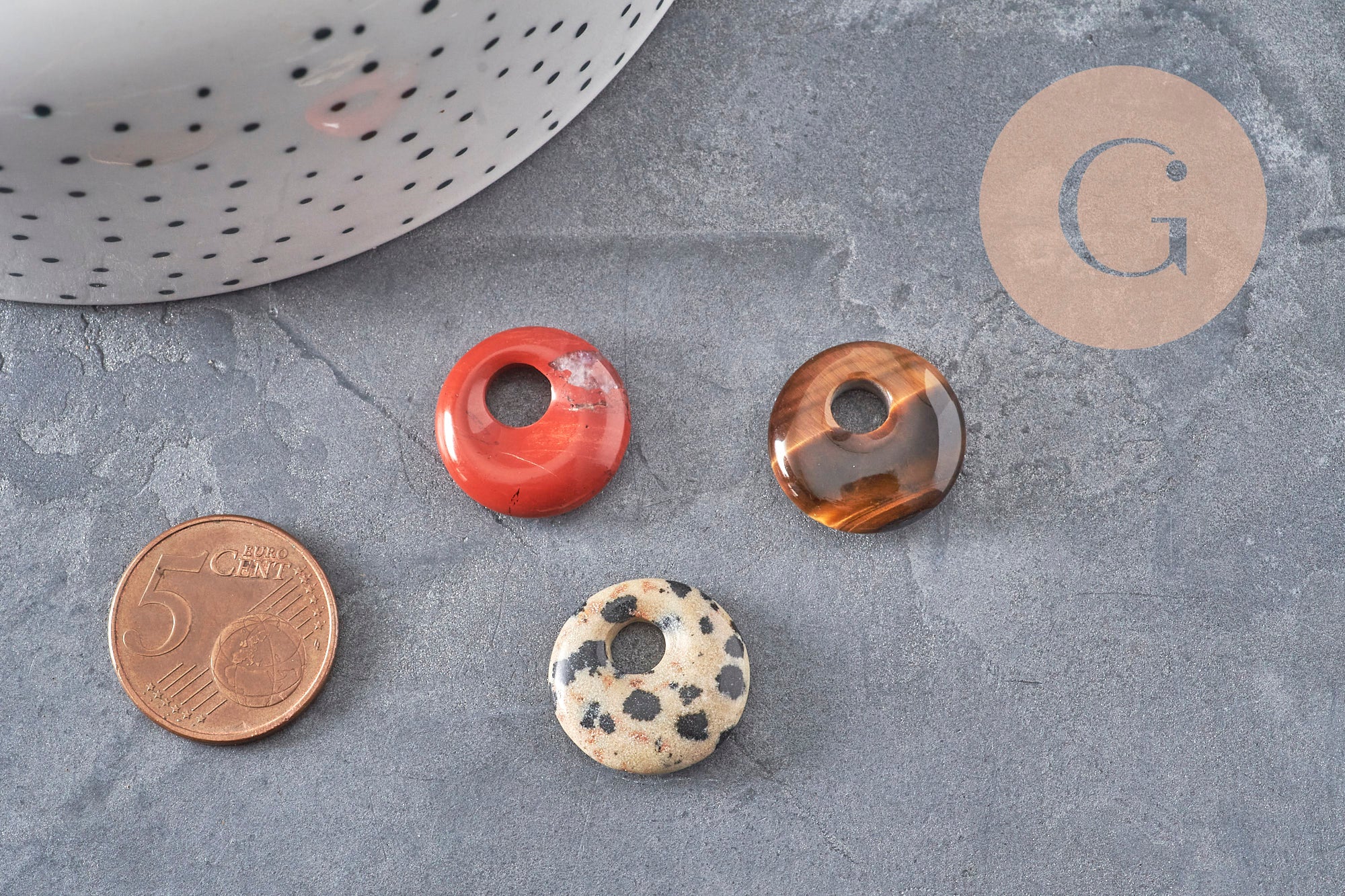 Este colgante redondo de piedra natural de 18 mm con un agujero central es la base ideal para crear joyas DIY con una estética natural, orgánica y contemporánea. Su forma plana y su amplio agujero permiten un fácil montaje en una cadena, cordón o cinta, a la vez que realza la belleza natural de la piedra.
