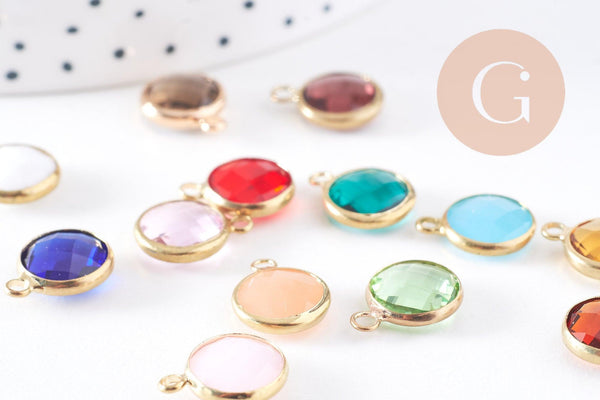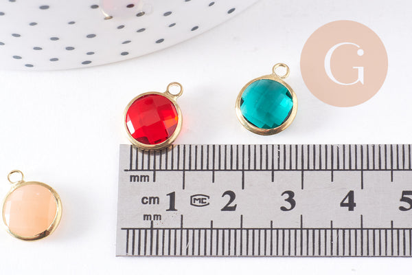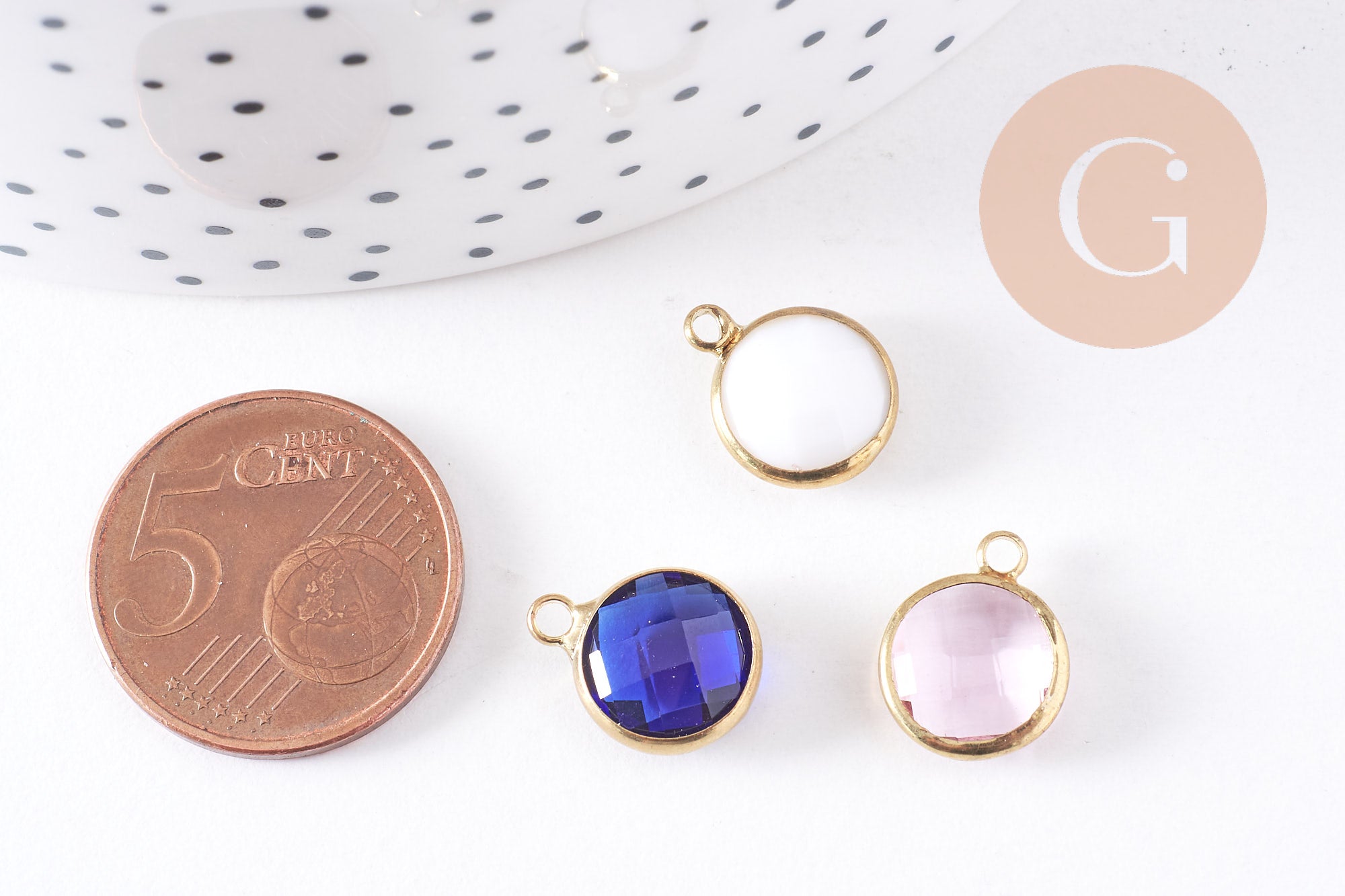 Colgante de cristal dorado redondo, suministros creativos, colgante de cristal, colgante de oro, cristal de colores, creación de joyas, 14 mm