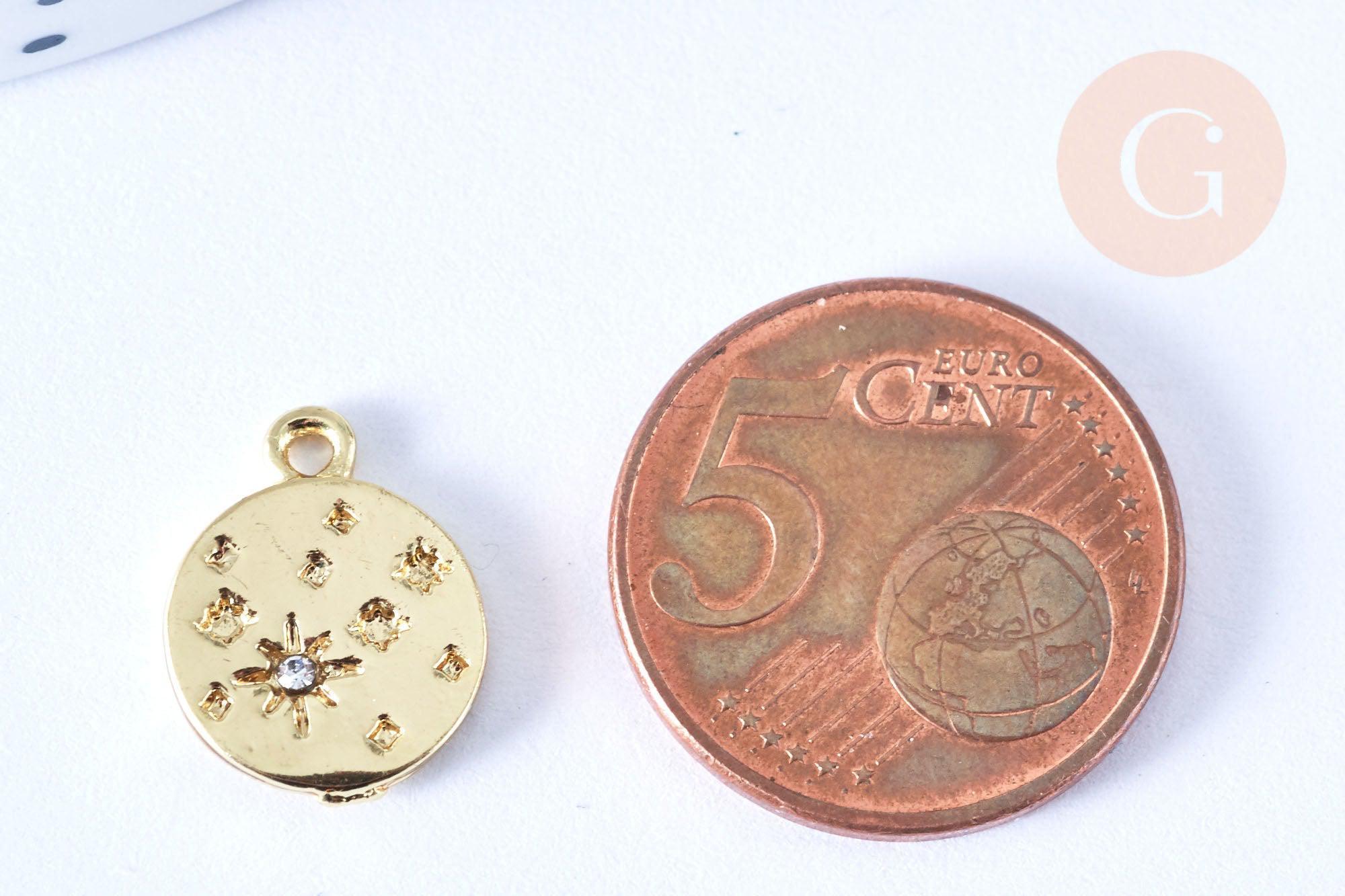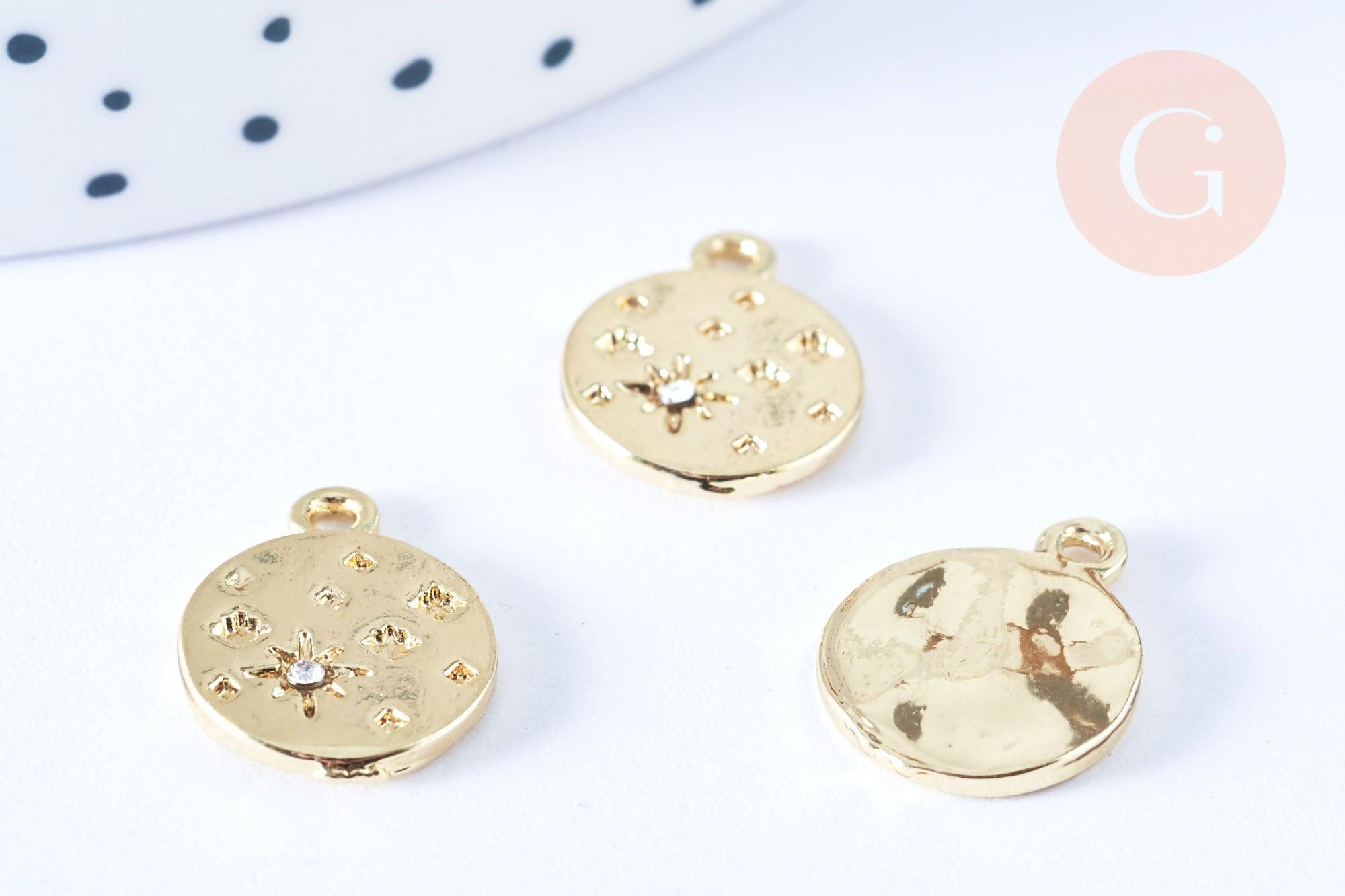 Colgante de estrella redonda, cristal blanco, latón bañado en oro, 15 mm, sin níquel, colgante de la suerte, 15 mm, x1 (G7114)