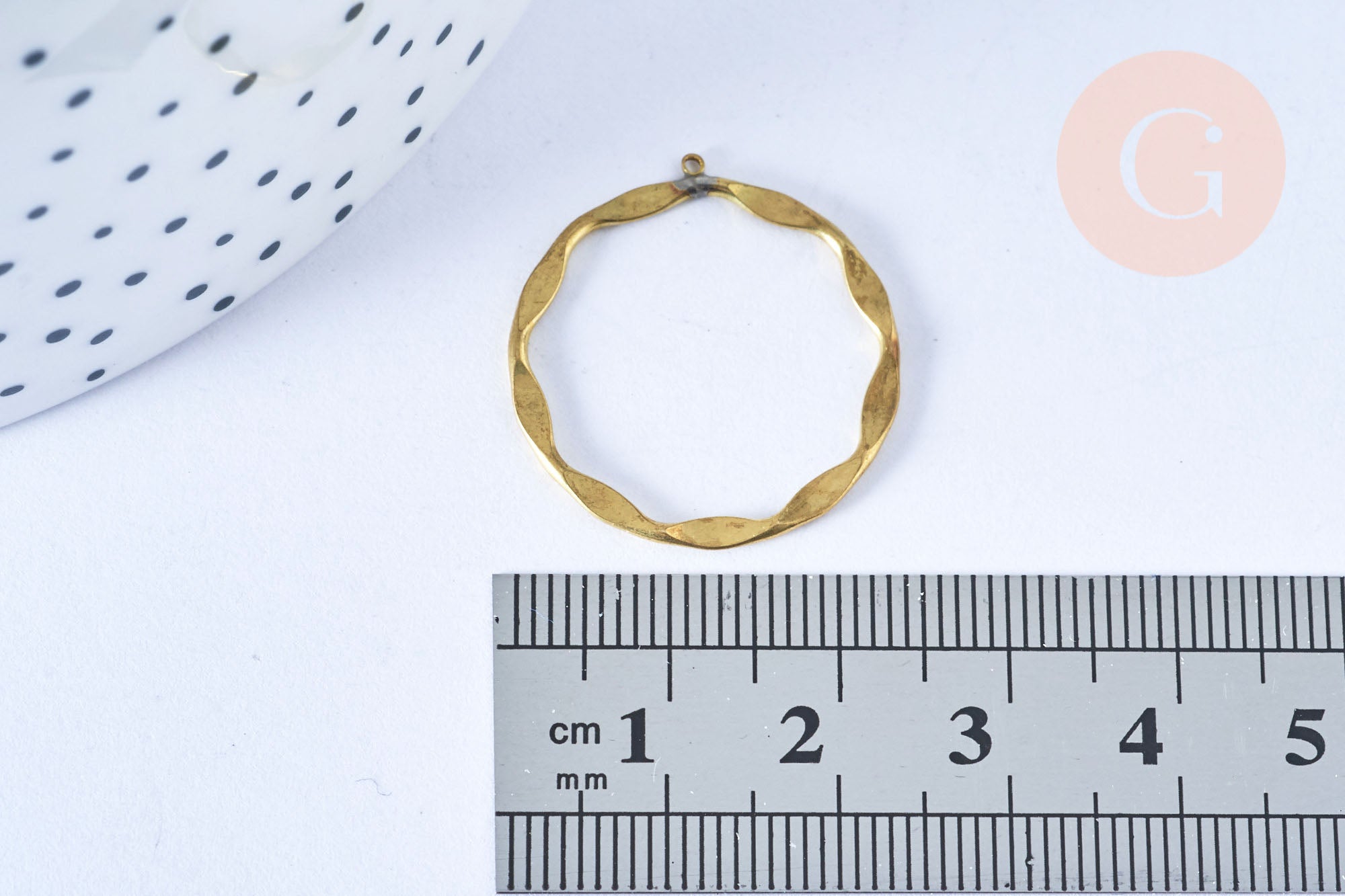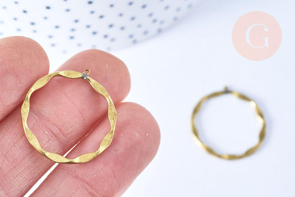 Crea innumerables piezas de bisutería DIY usando este colgante. en latón crudo . Este tiene pequeñas ondas y tiene forma geométrica.