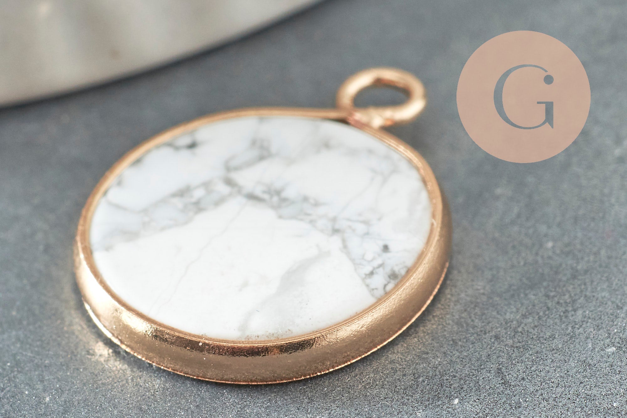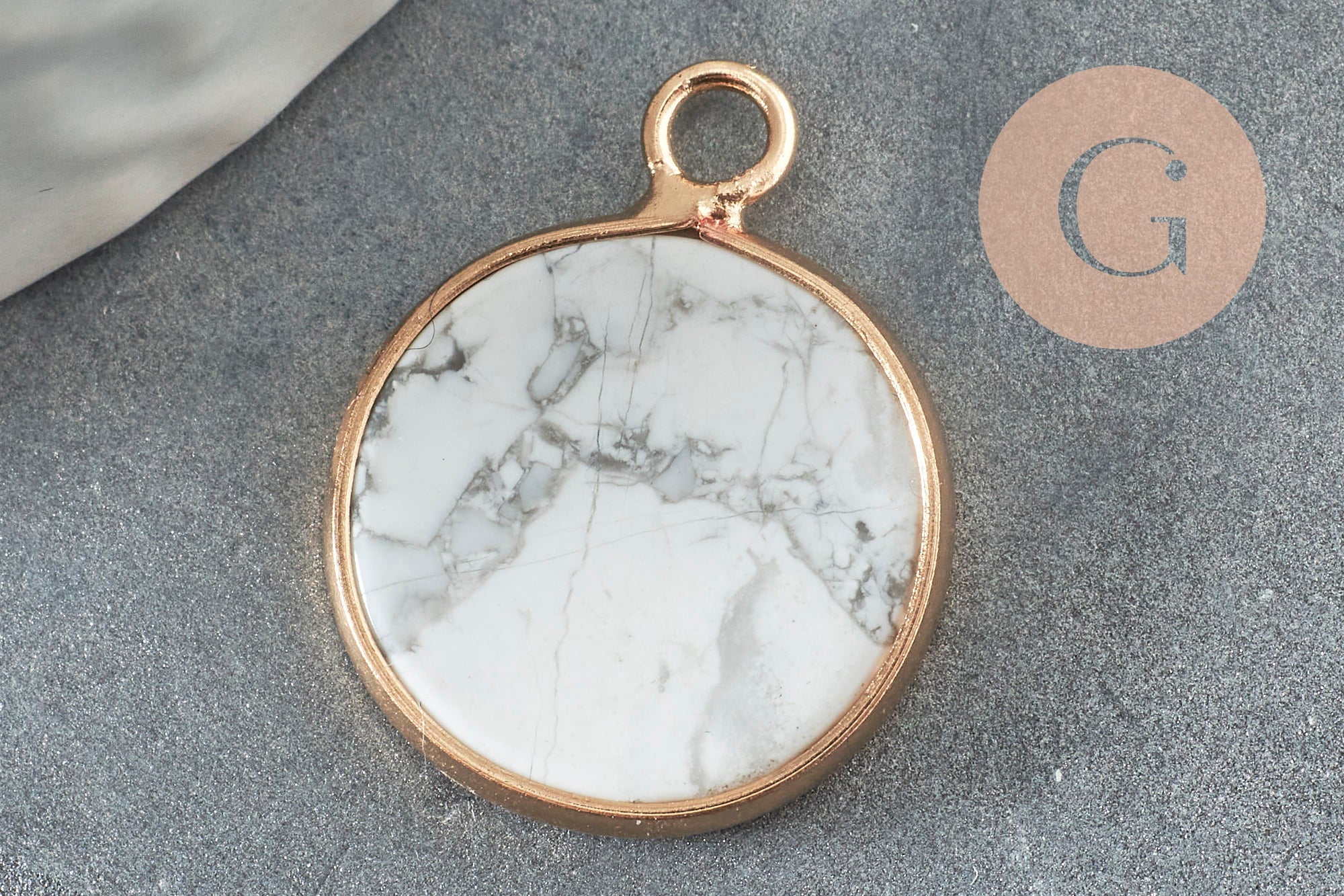 Pendentif rond howlite 20mm,howlite naturel,pendentif rond, x1 G6594