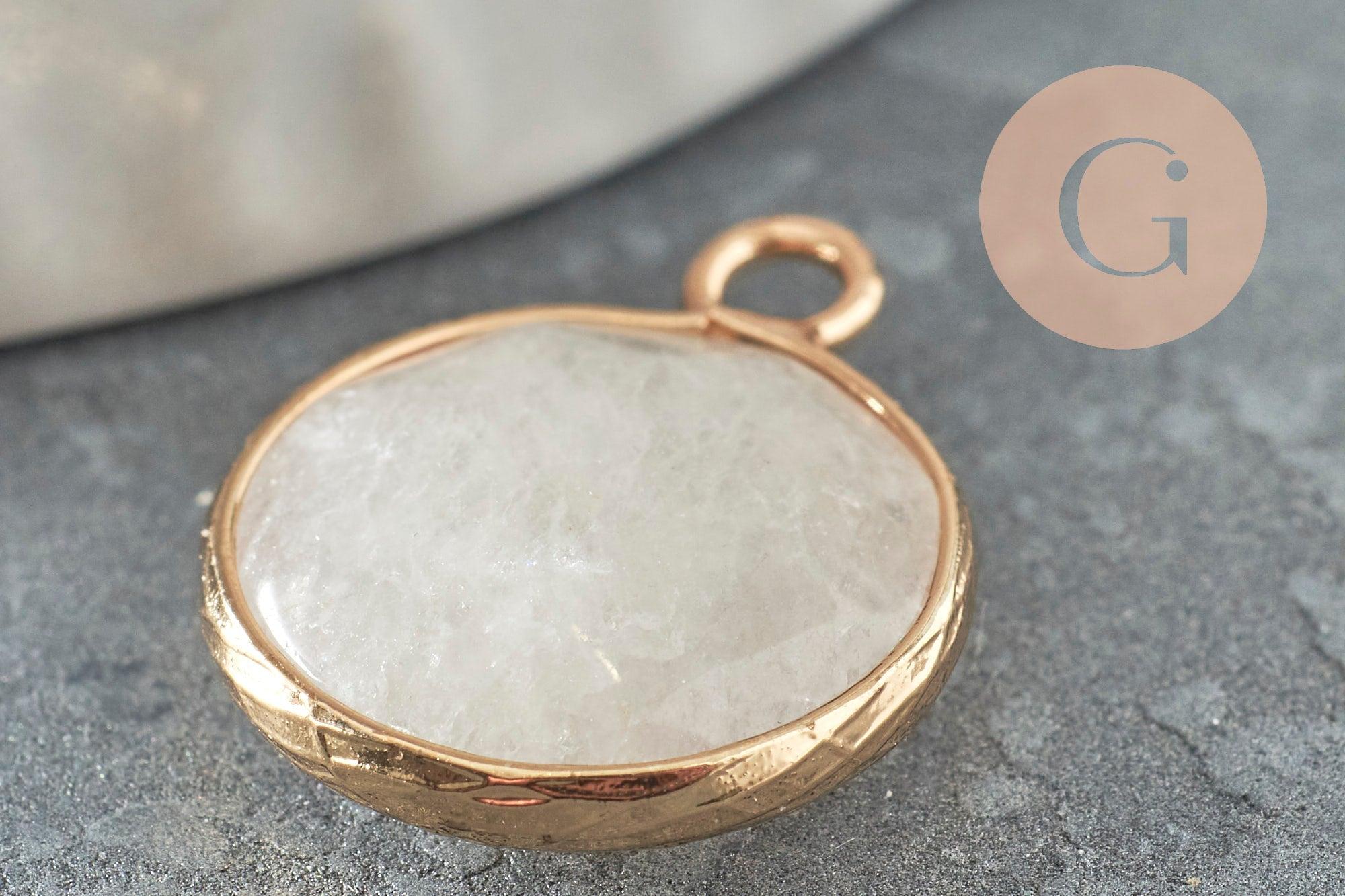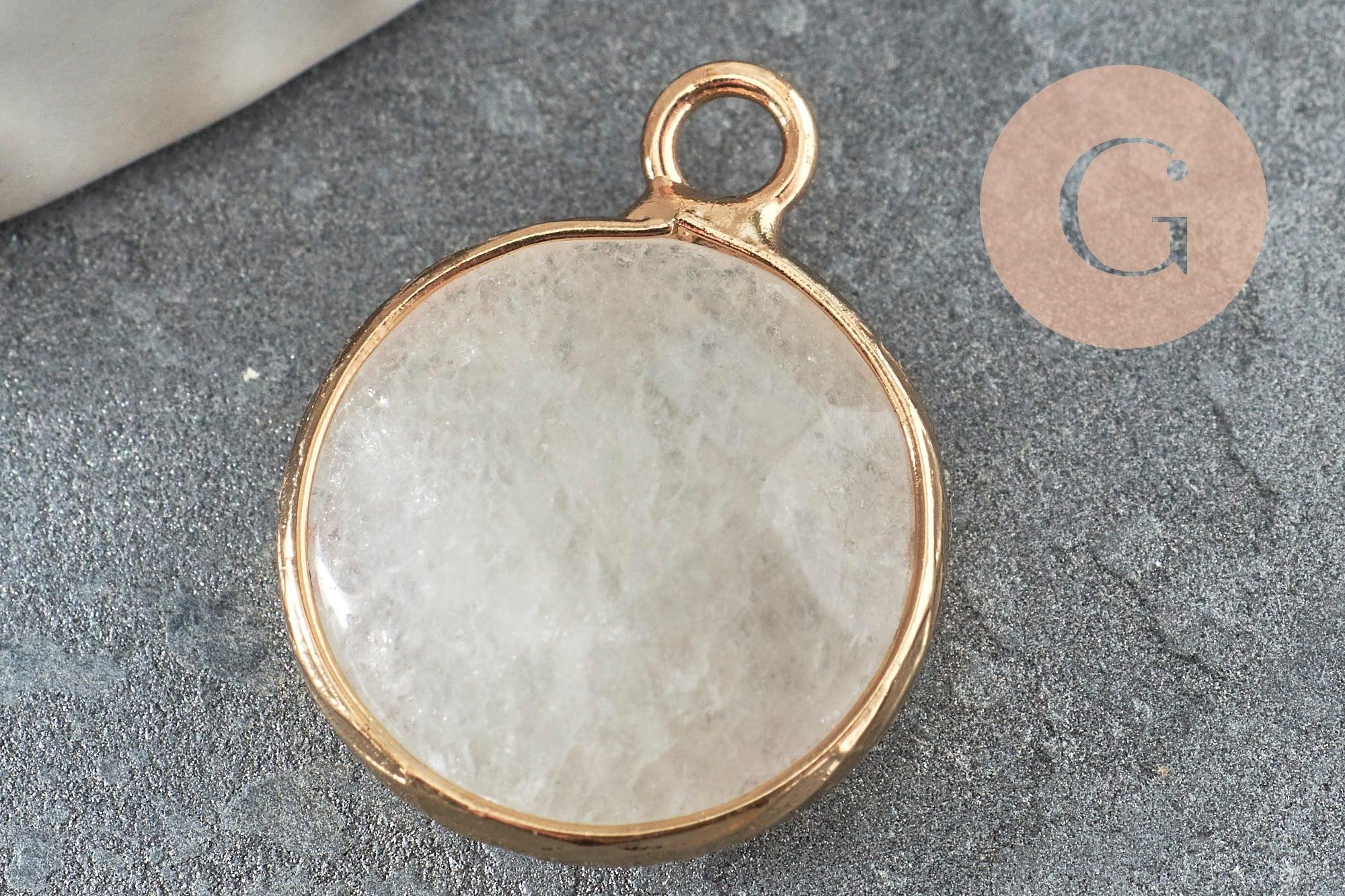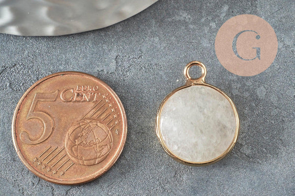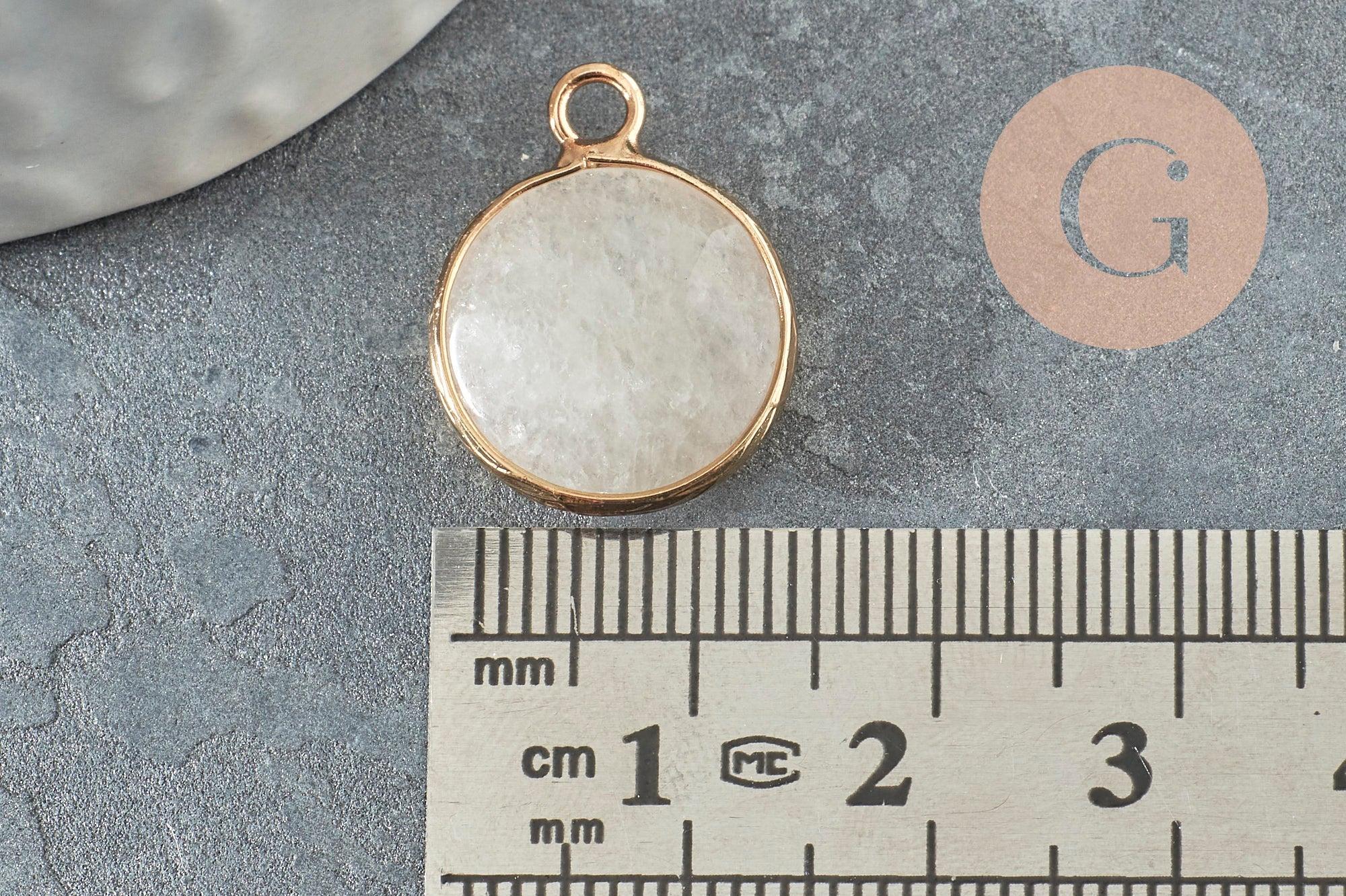 Pendentif rond jade naturel blanc 20mm, pendentif pierre, x1 G3097