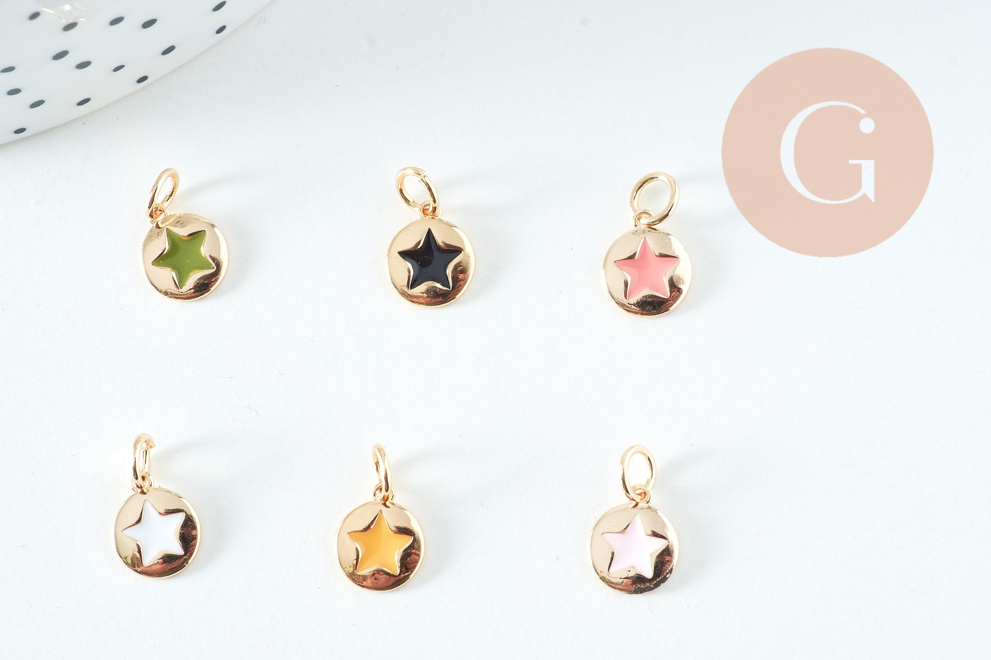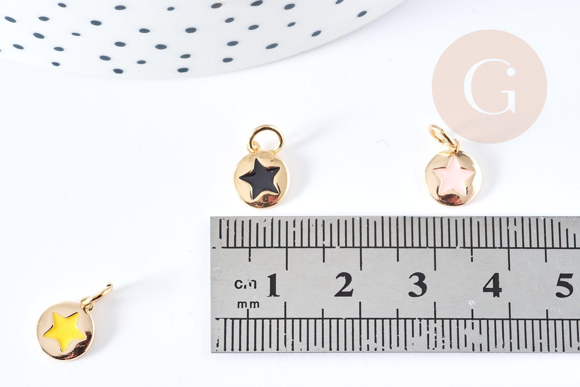 Dale un toque de estrellas a tus creaciones de joyería DIY con este colgante redondo de latón bañado en oro de 18 quilates, adornado con una colorida estrella de esmalte . Ideal para crear collares, pulseras, pendientes y collares largos originales y a la moda.