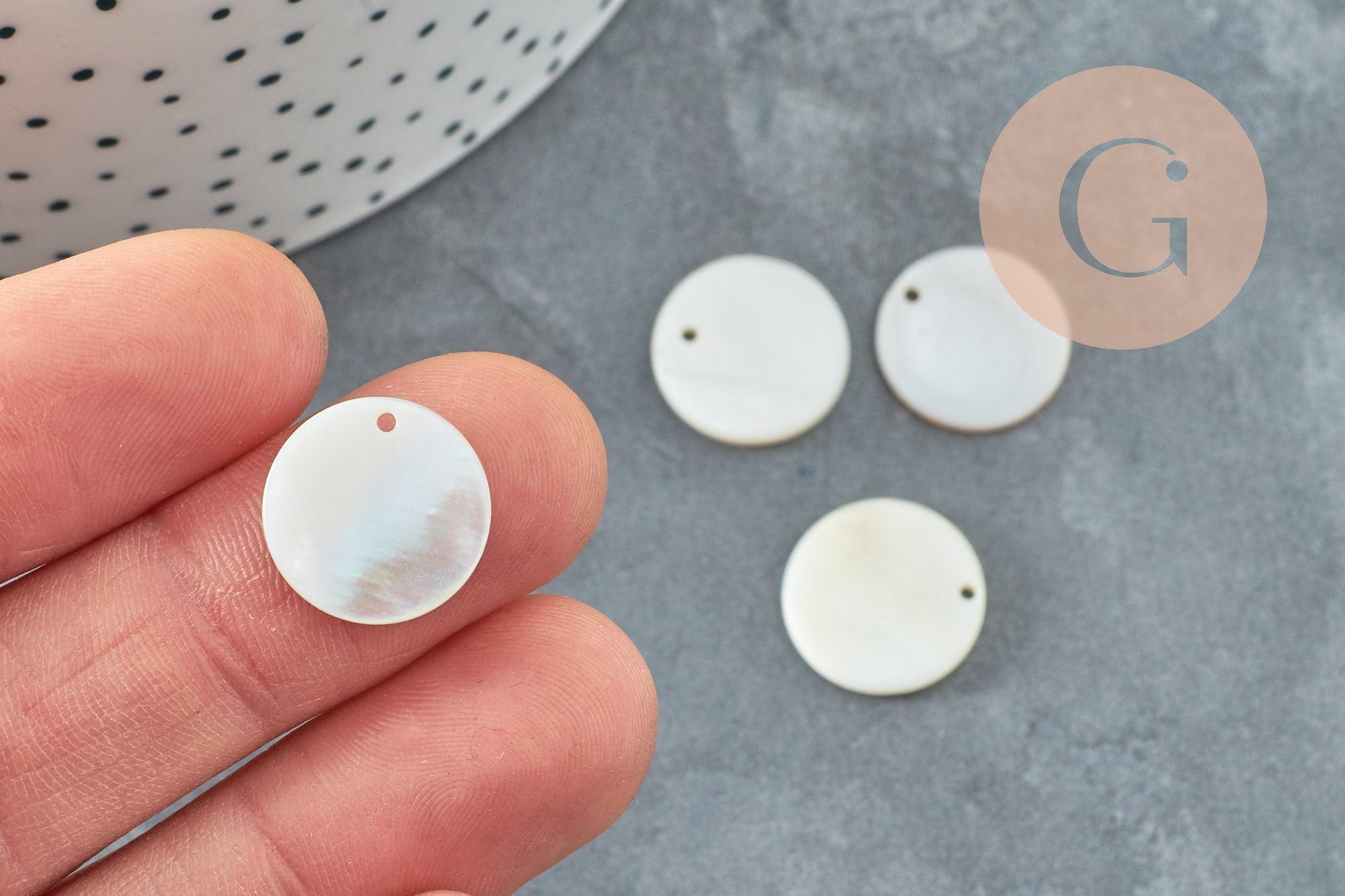 Descubra este magnífico colgante redondo de nácar blanco , el suministro creativo perfecto para sus proyectos de joyería . Este colgante de concha, que mide 15 mm, está hecho de conchas marinas blancas naturales, lo que le da a cada colgante un aspecto único.