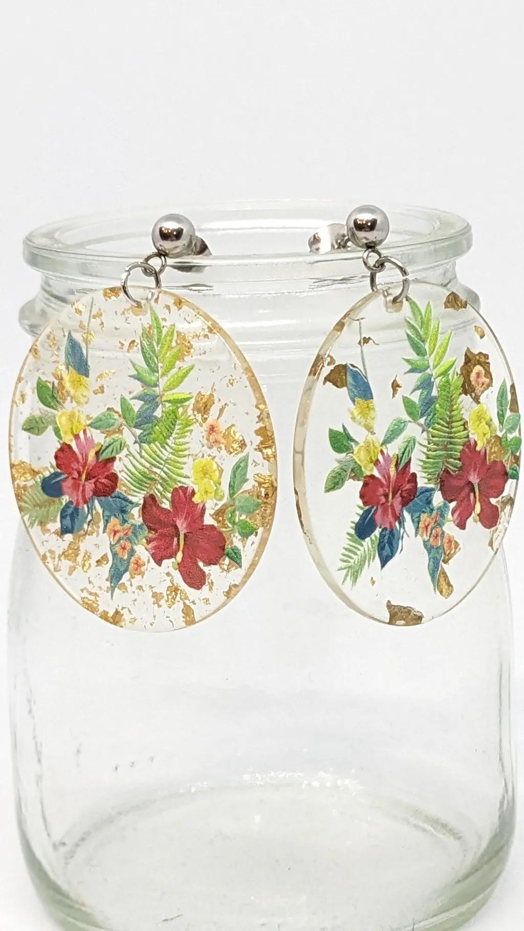 ¡Colgantes en resina epoxi transparente y flores secas, realzados con pan de oro!