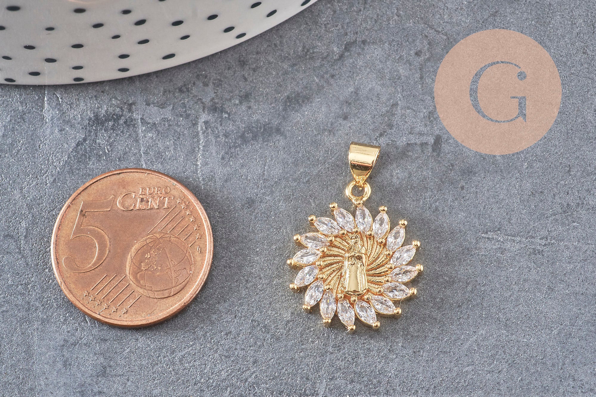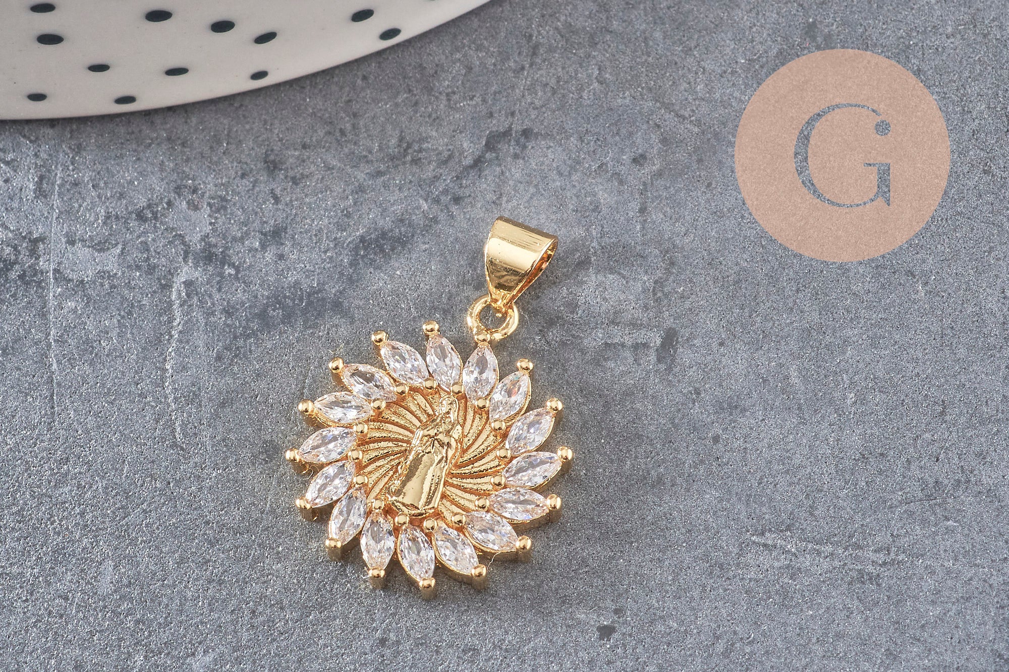 Colgante de sol de la Virgen María de latón bañado en oro de 18 quilates con circonitas de 21 mm, cristal para crear joyas de la suerte para mujeres con circonitas, x1 G8518