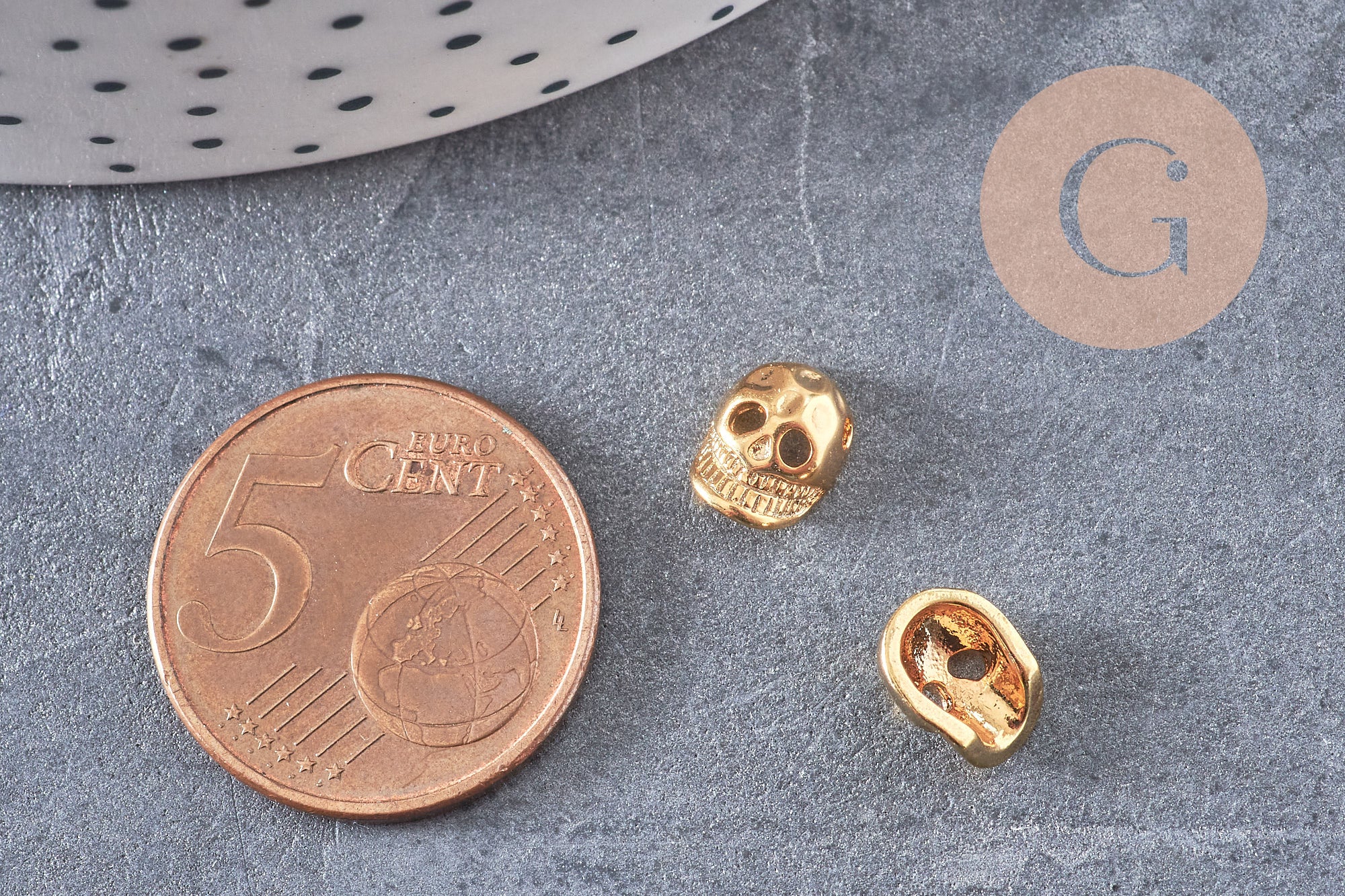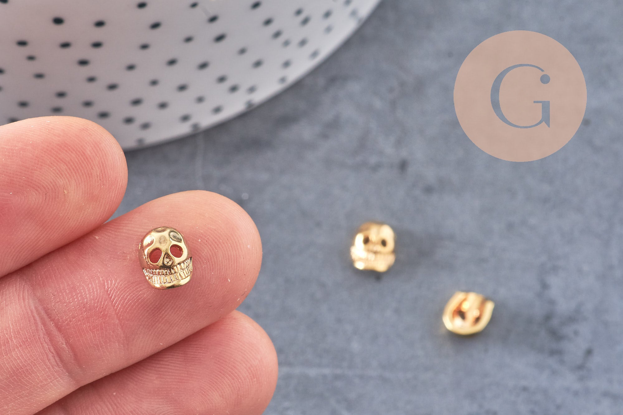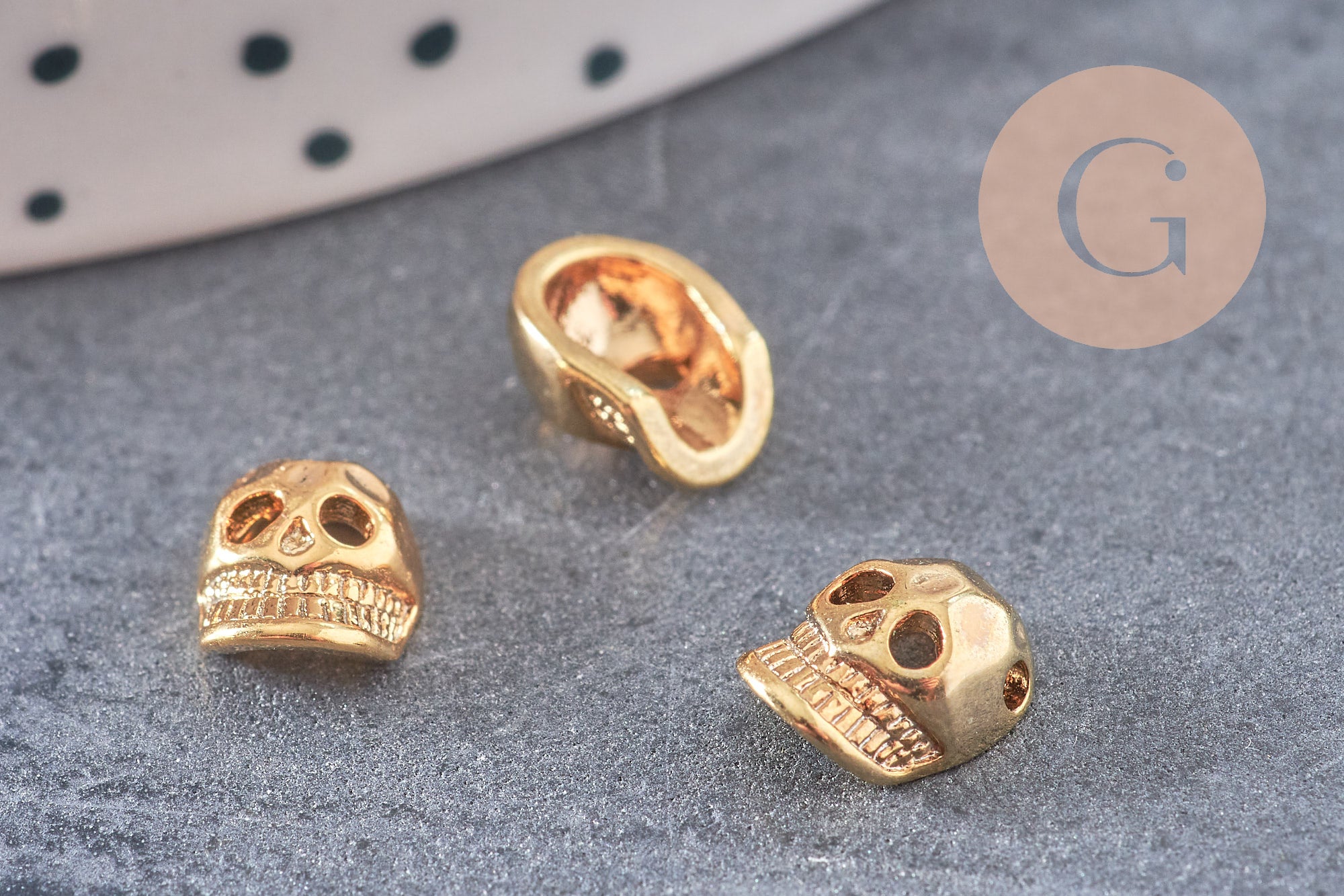Colgante calavera latón bañado en oro 2,5 micras, colgante sin níquel, creación de joyas bañadas en oro, colgante latón bañado en oro, 9mm, set de 2