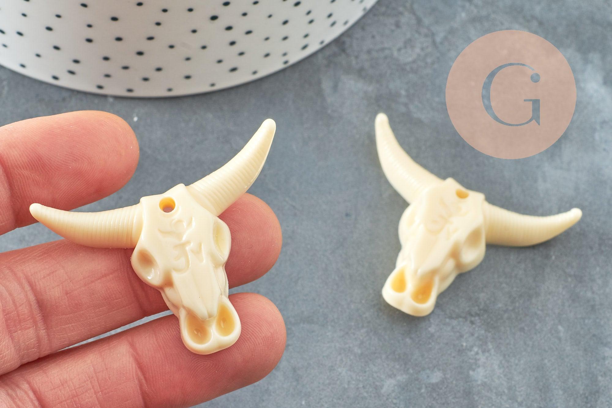 colgante de cabeza de vaca de resina blanca, colgante de coral de imitación para la fabricación de joyas de resina, 2 cuentas, 46,5 mm