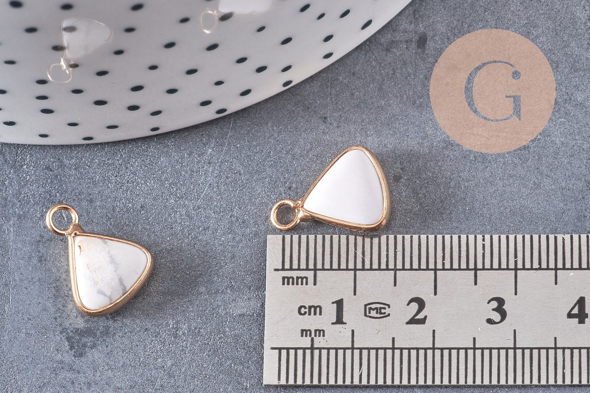 Déjate seducir por este colgante triangular de howlita blanca jaspeada natural para crear joyas bohemias y chic muy actuales.