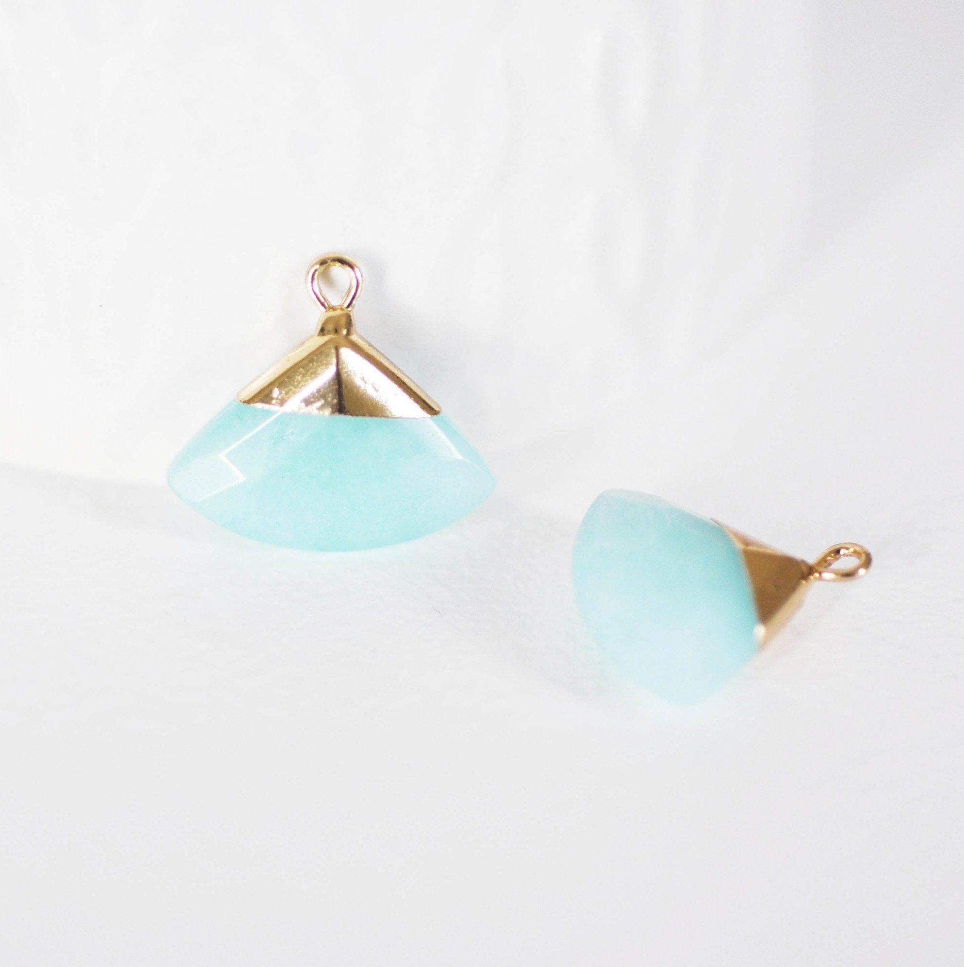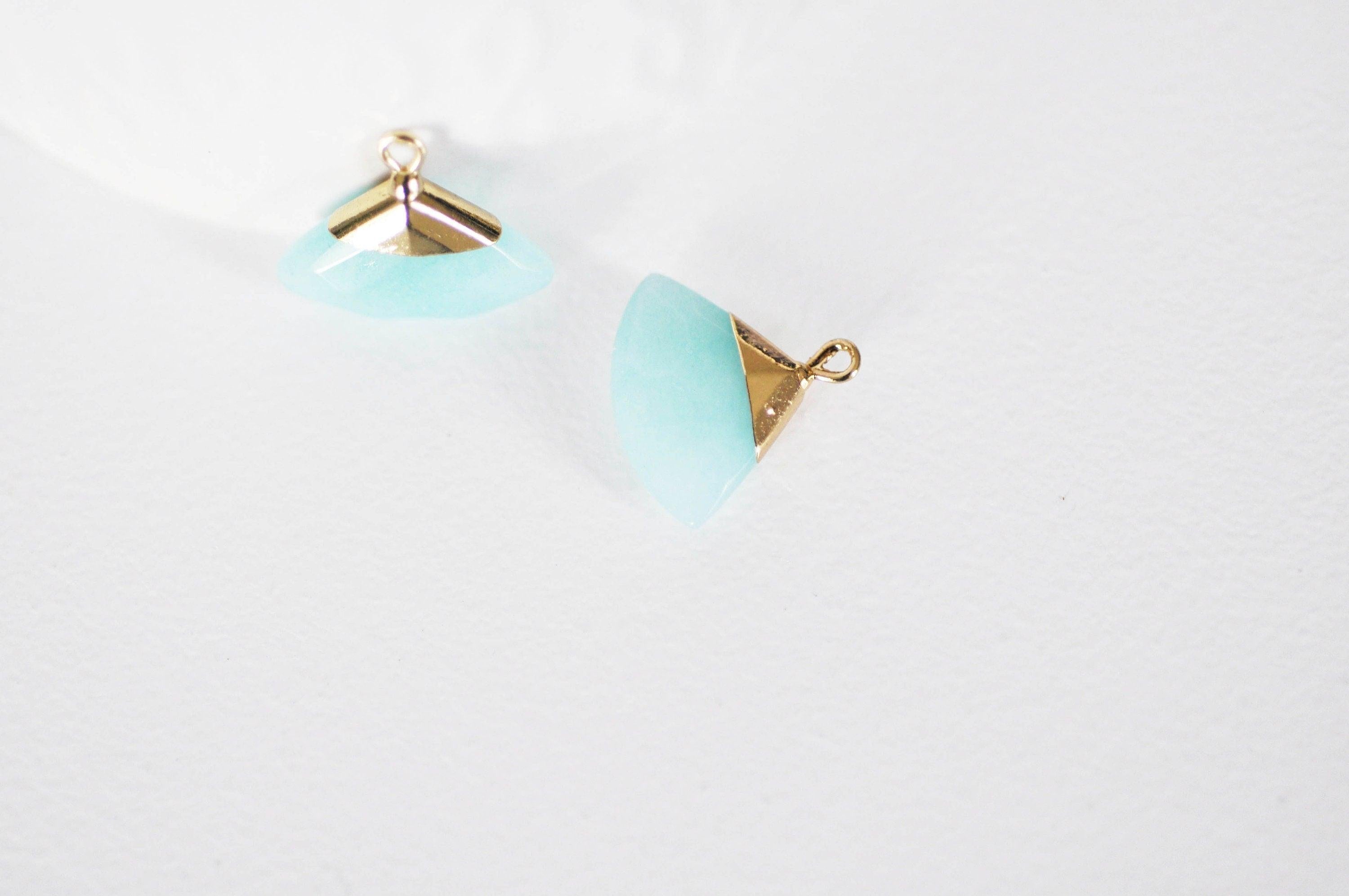 Déjate seducir por este pequeño colgante triangular de jade azul con su soporte dorado.