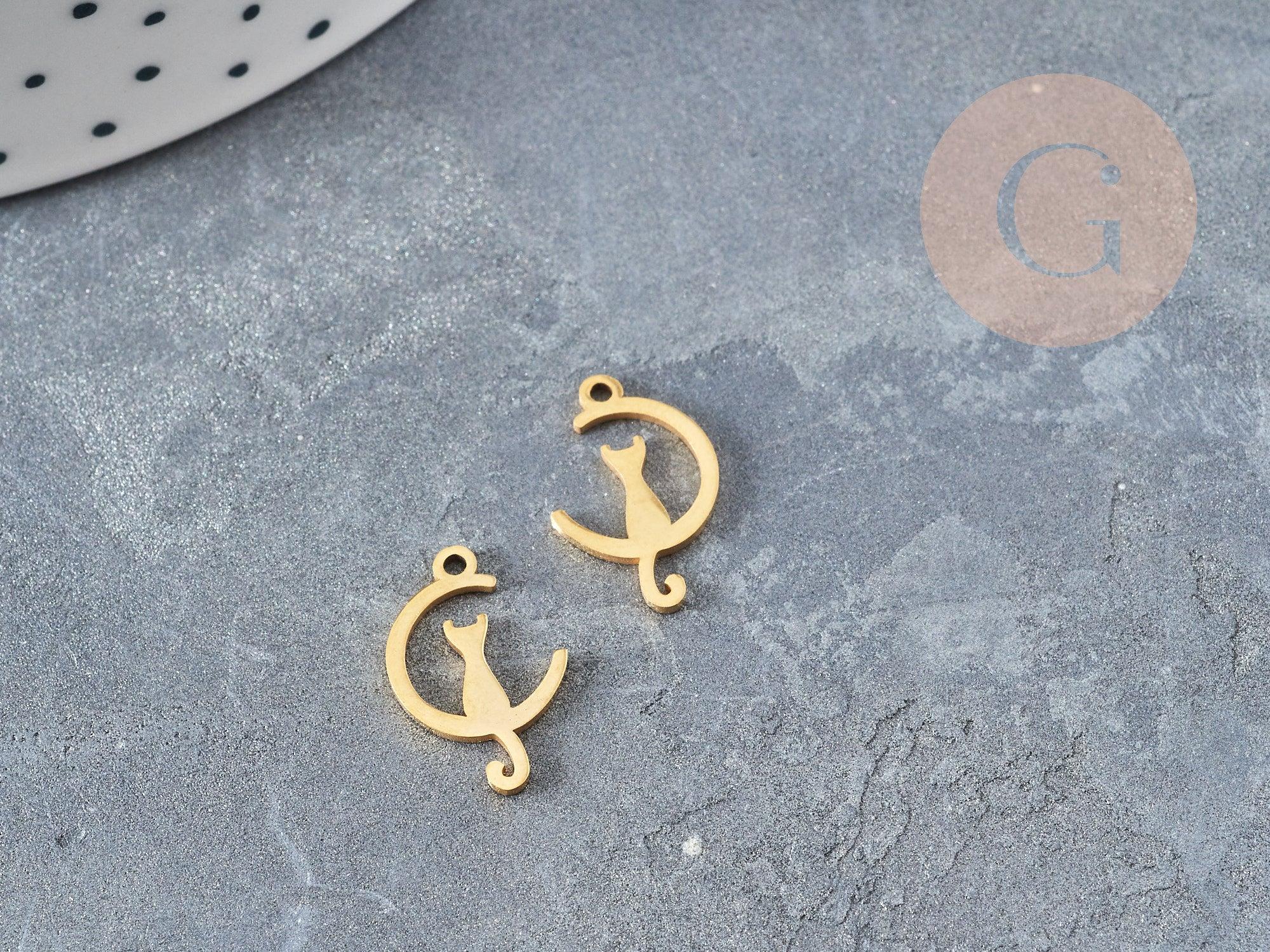 Pendentifs chat en acier 201 doré inoxydable 17.5mm, croissant de lune en forme de chat, création bijou acier doré x1 G4832