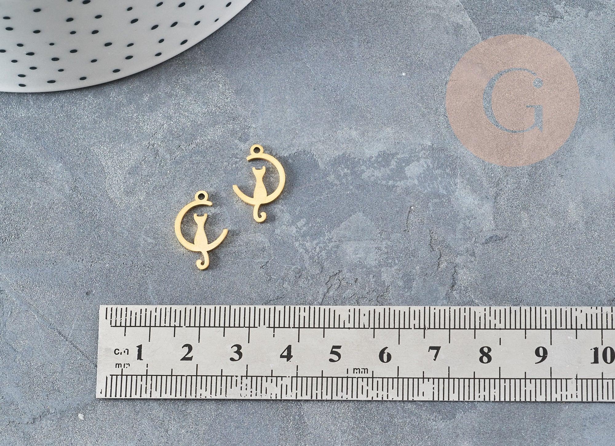 Colgantes de gato en acero inoxidable oro 201 17,5mm, luna creciente en forma de gato, creación de joyas en acero dorado x1 G4832