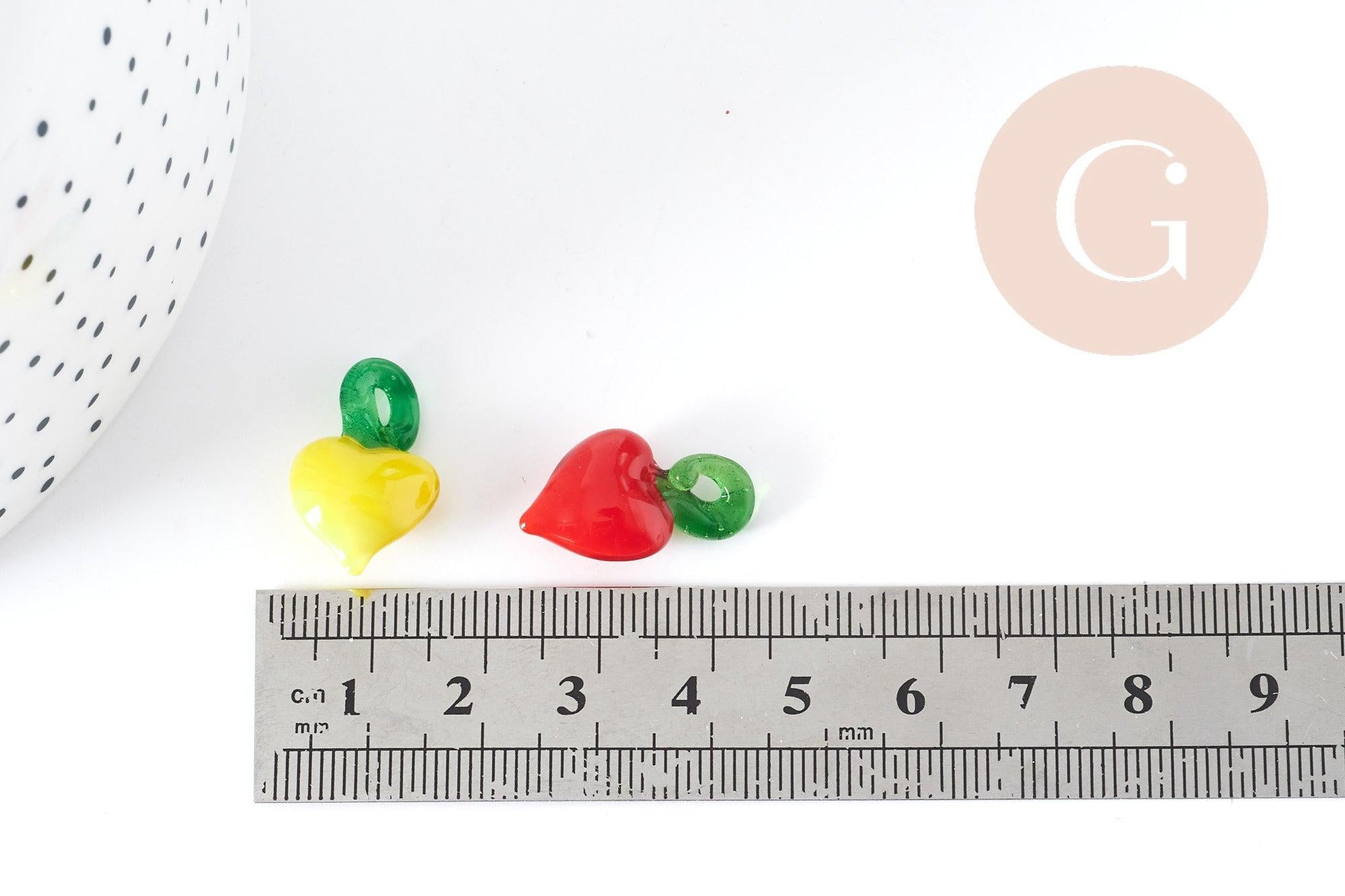 Colgante de corazón de vidrio artesanal colorido 21 ~ 22,8 mm, colgante de corazón de joyería de amor, UNITE G8979