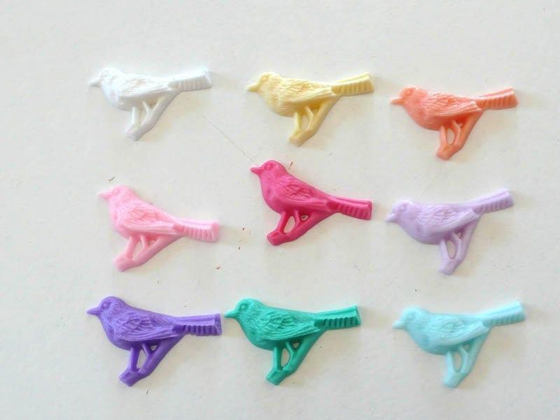 Colgantes de pájaros de plástico, útiles creativos, bisutería infantil, fabricación de joyas, taller infantil, abalorios multicolores, unidad Un bonito pájaro posado en una rama de resina de colores. Piezas ideales para hacer unos bonitos pendientes, un collar o una gargantilla....